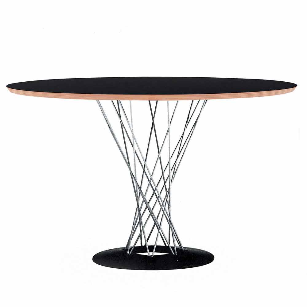 Table à manger avec plateau rond en stratifié noir Made in Italy.