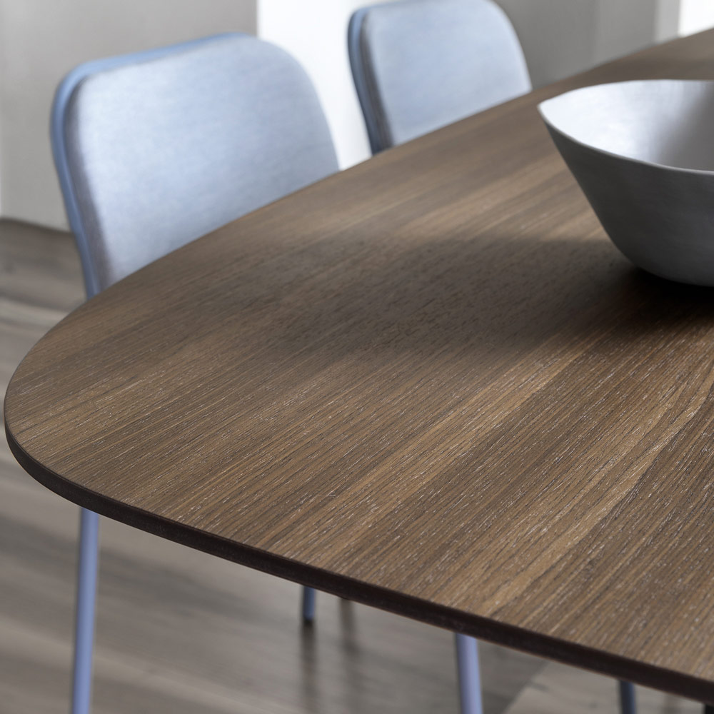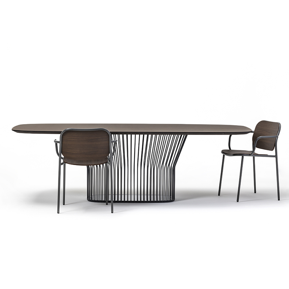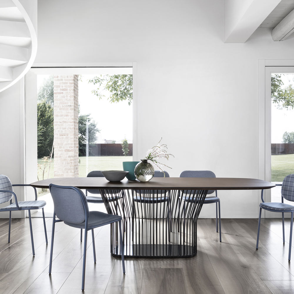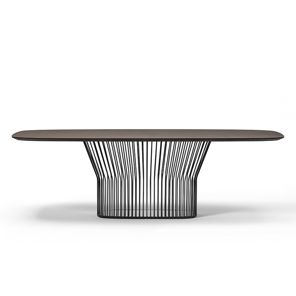 Le point fort de la table est représenté par la base originale caractérisée par un style dynamique et composée de nombreux rayons de différentes largeurs qui se replient vers l'extérieur en haut puis s'ouvrent pour soutenir le plateau. Les dimensions proposées ainsi que les différentes finitions du plateau permettent à ce magnifique meuble de se révéler particulièrement polyvalent et donc capable de compléter n'importe quel espace, conquérant le centre d'attention par son âme contemporaine et son goût raffiné.