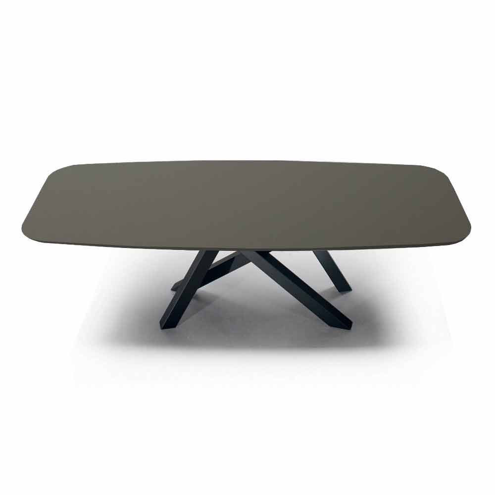 Table à manger en forme de tonneau fabriquée en Italie en fenix fin et acier laqué.