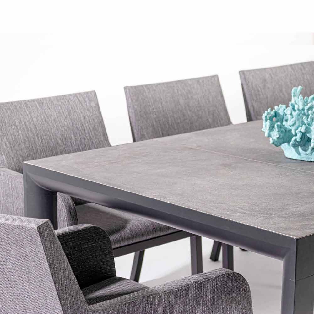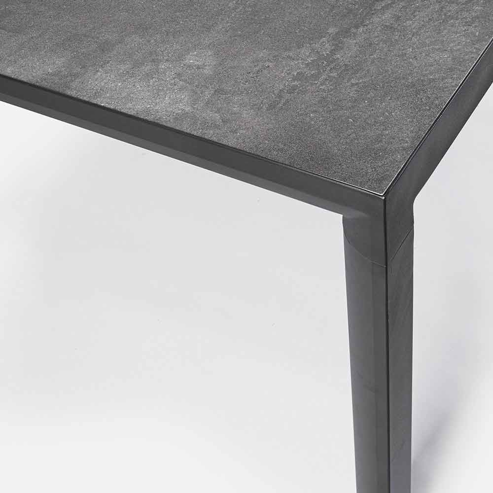 Structure en aluminium , enduit de poudre (polyester). Plateau en céramique (10 mm d'épaisseur). Pieds à assembler .