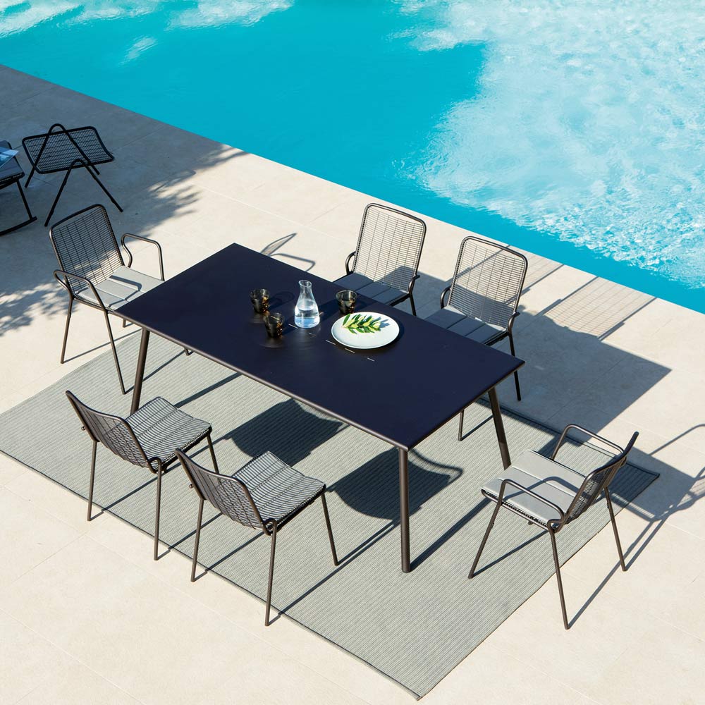 Table de jardin avec structure en acier galvanisé, fabriquée par des artisans italiens, garantissant une qualité 100 % Made in Italy . Cet accessoire d'ameublement est fabriqué avec des matériaux conçus pour offrir une haute résistance aux agents atmosphériques et corrosifs. Son design est moderne et raffiné, alliant praticité et fonctionnalité . Ses proportions harmonieuses et équilibrées s'harmonisent avec ses couleurs sobres et élégantes.