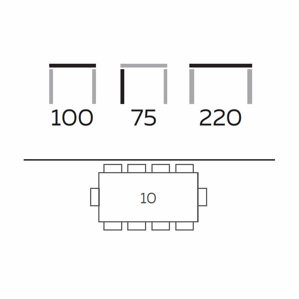 - L 220 x P 100 x H 75 cm;