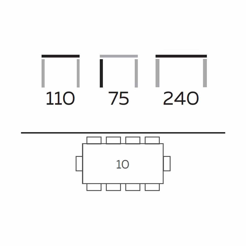 - L 240 x P 110 x H 75 cm.