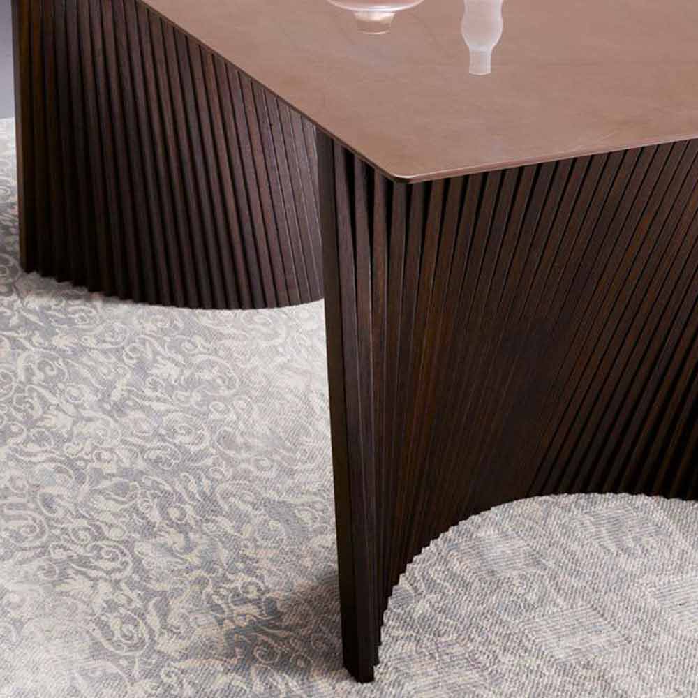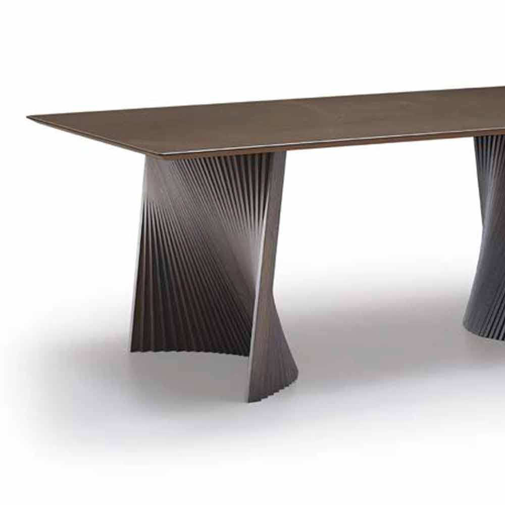 Table de salle à manger avec plateau en grès et pieds en frêne, produit de luxe Made in Italy.