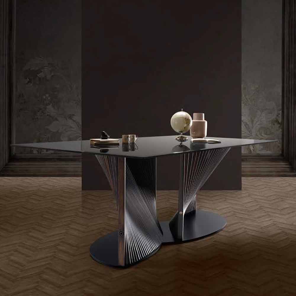 Table à manger de luxe en verre fumé et frêne huilé Made in Italy - Croma