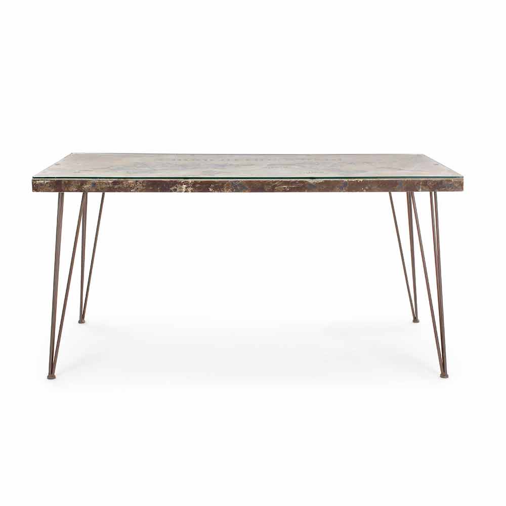 https://www.viadurini.fr/table-a-manger-de-style-industriel-avec-plateau-en-mdf-et-verre-homemotion-bresil28691Table à manger de style industriel avec plateau en MDF et verre Homemotion - Brésil