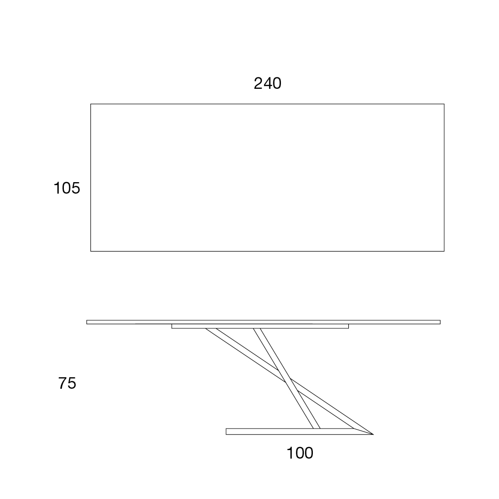 Cette table comporte une base métallique revêtue de poudre avec un insert central en bois laqué et une partie supérieure en bois plaqué noyer canaletto. La particularité est donnée par la forme zêta indubitable de la structure de la table qui joint le complément à l'environnement dans lequel il est placé. Le résultat est donc d'un grand raffinement dans le style et le design.