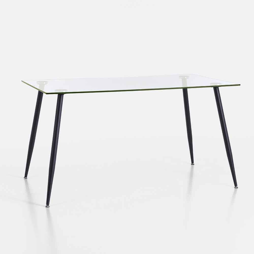 Table à manger design moderne en verre trempé et métal noir - Foulard