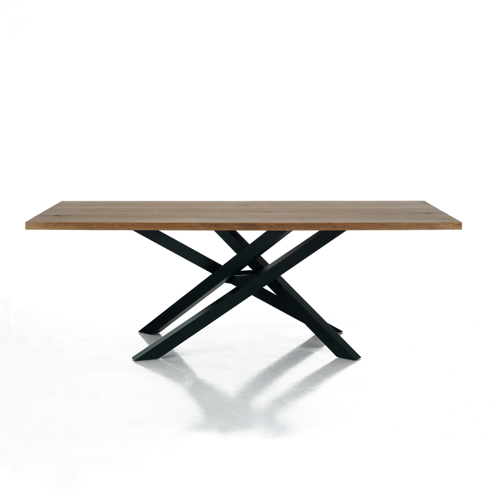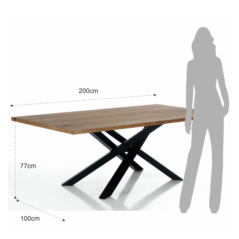 Table d'intérieur avec plateau en bois de bouleau massif de 36 mm d'épaisseur. Plaqué chêne , piètement en bois de bouleau massif peint noir mat, épaisseur 7x7 cm, entièrement . Ce produit est l'idée parfaite pour tous ceux qui souhaitent donner une touche de modernité et de fraîcheur à la pièce, qu'il s'agisse d'un salon, d'une cuisine ou d'un environnement contract. Les matériaux choisis pour la construction sont de la plus haute qualité pour garantir au client une table non seulement belle à regarder mais aussi fonctionnelle et résistante , qui libère tout le savoir-faire artisanal de la table.