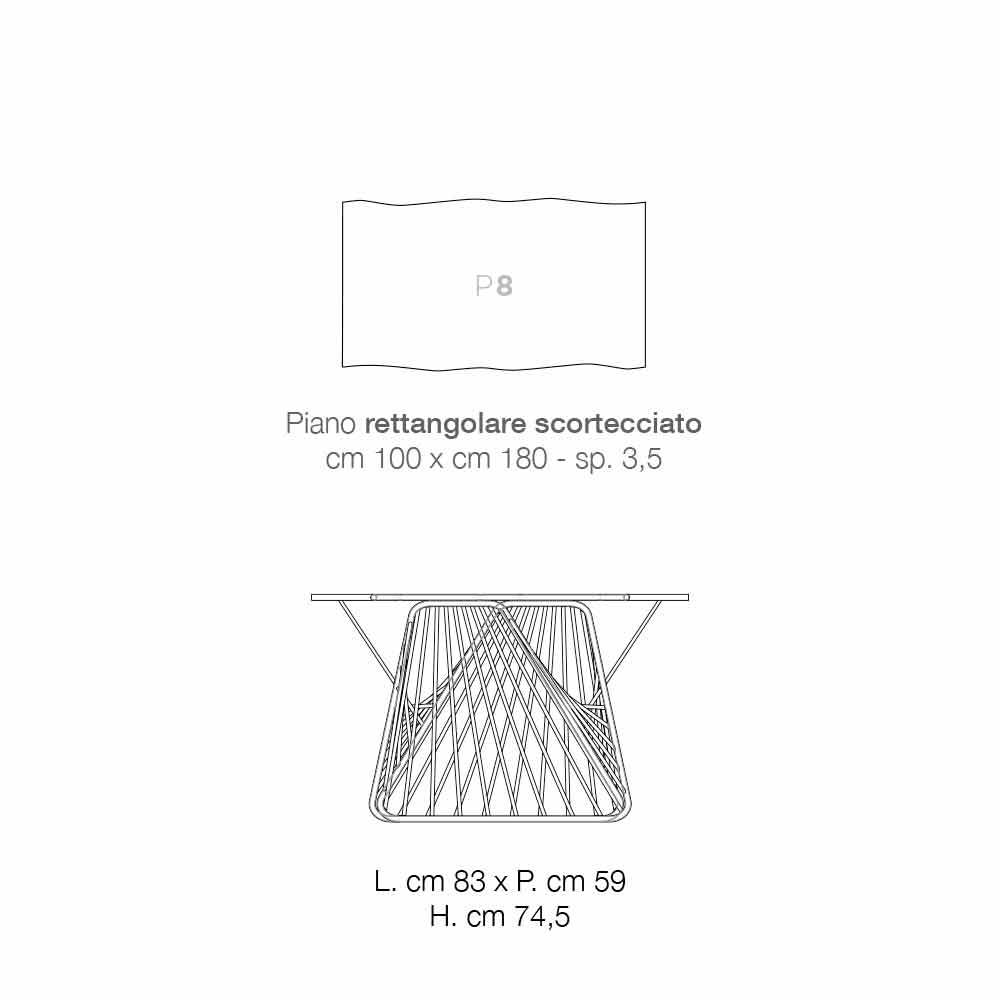 Mitia est une table fixe produite en Italie avec une base en métal peint et un plateau en particules de bois massif (35 mm d'épaisseur), plaqué sur les côtés longs.