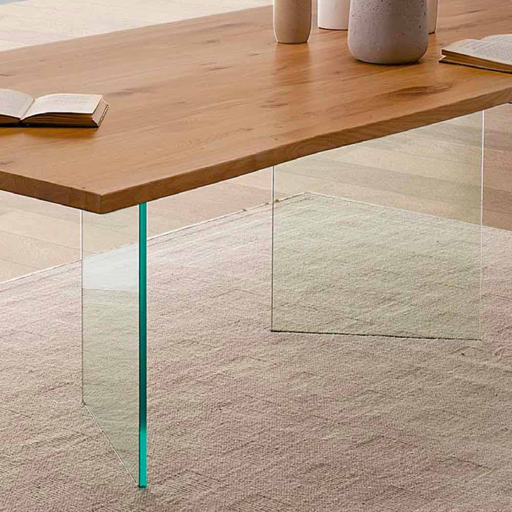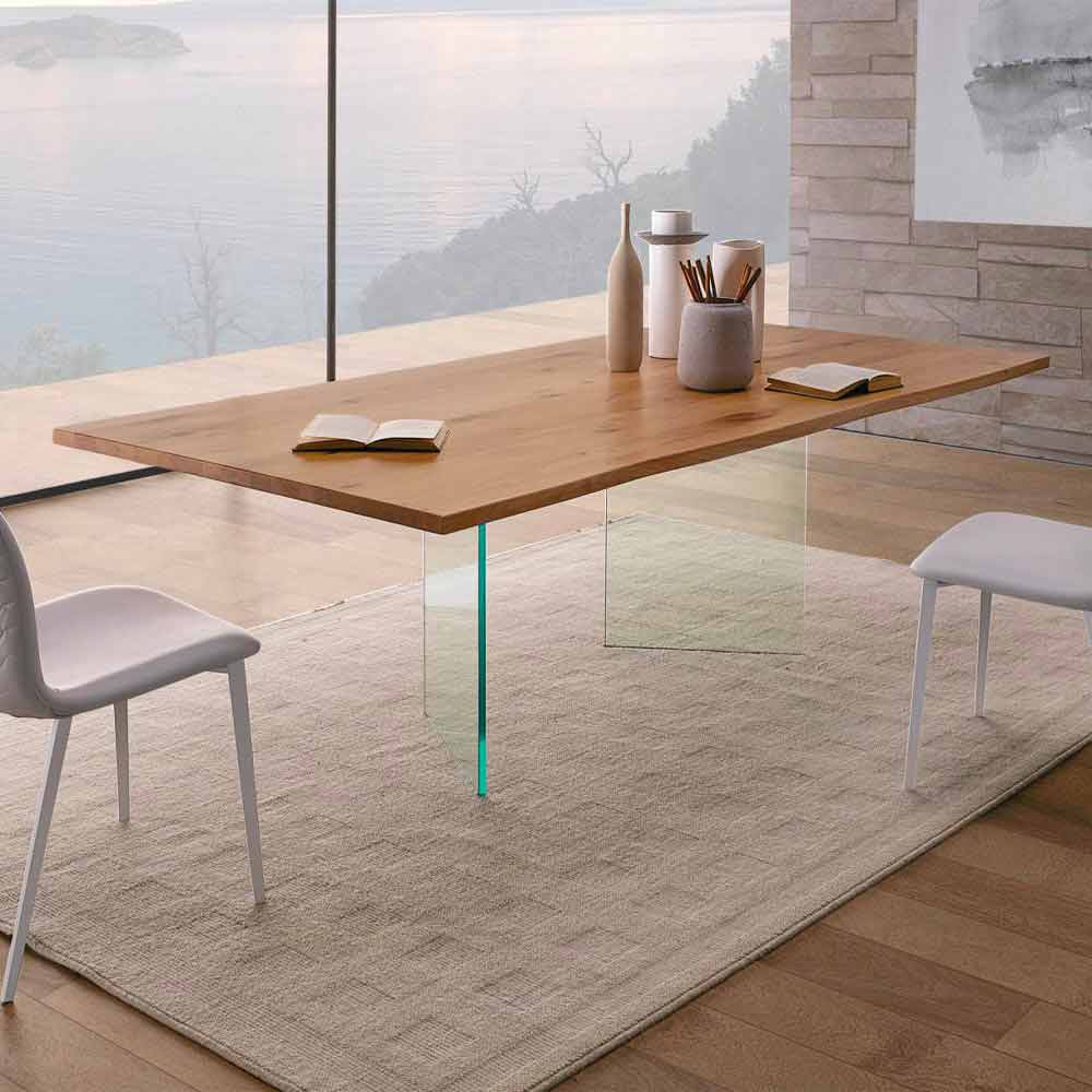 Table à manger en chêne noué et verre de haute qualité Made in Italy - Sibillo