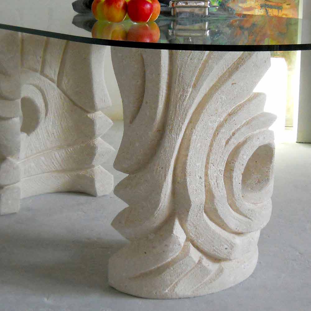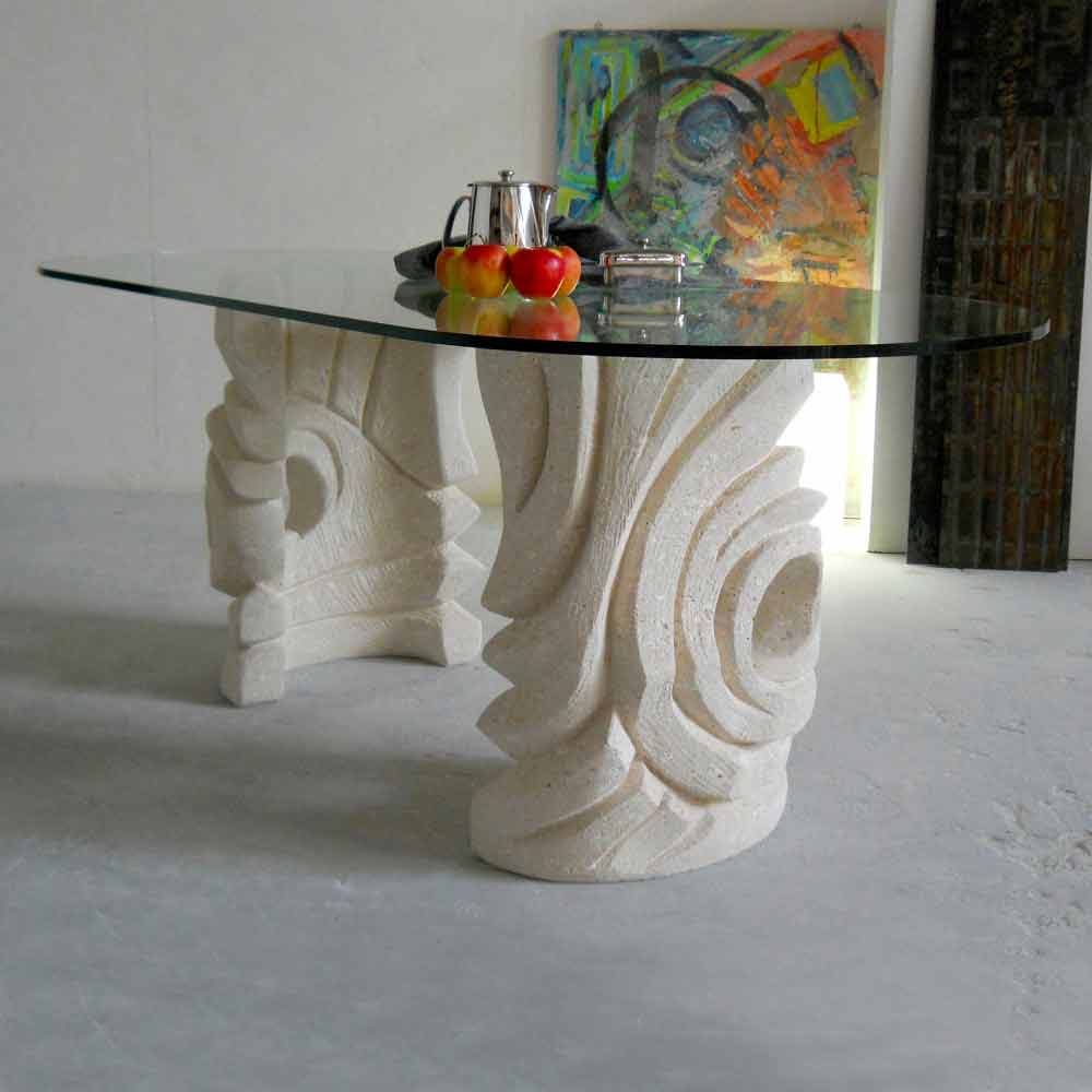 Table à manger en cristal, base en pierre naturelle de Vicenza Erinni