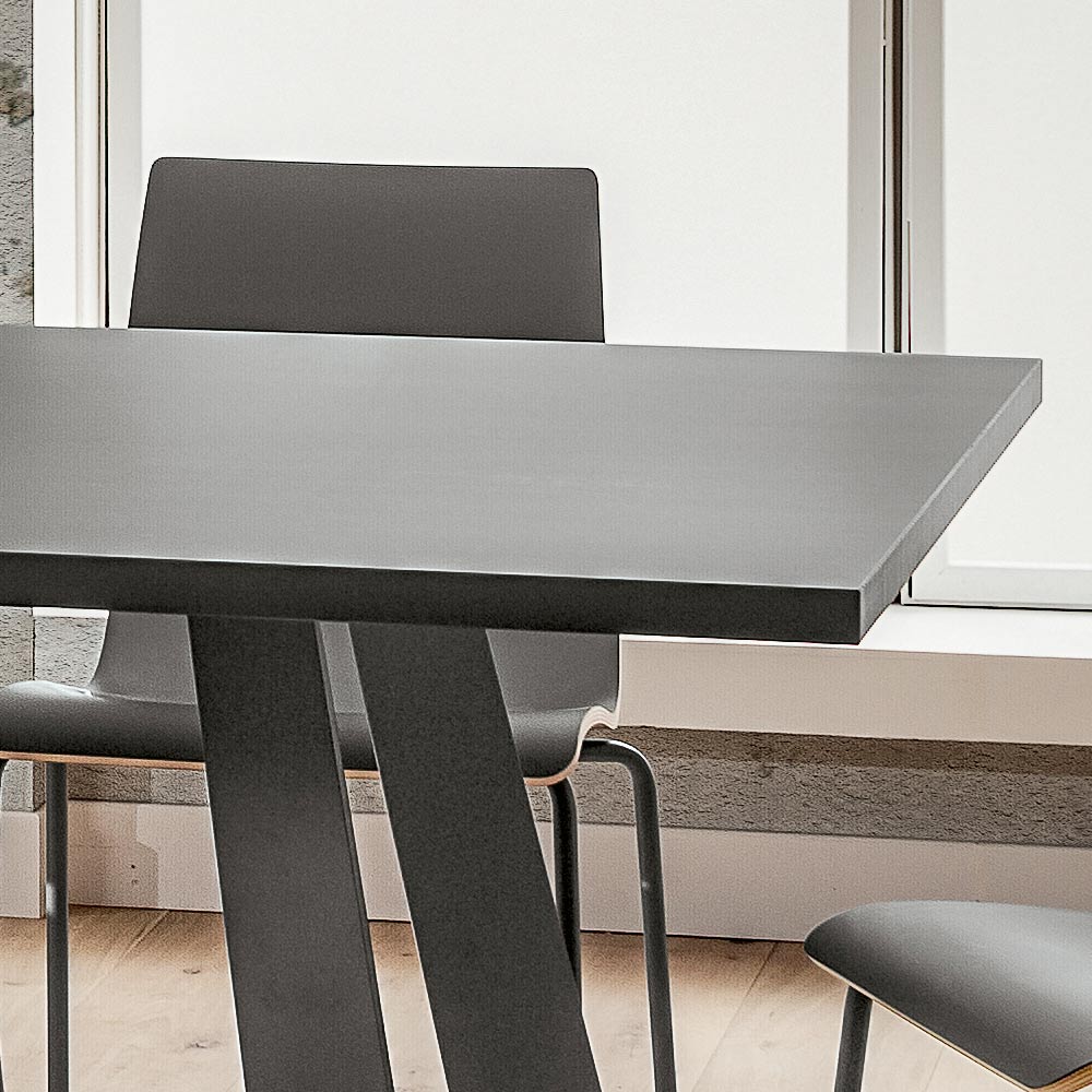 Table à manger fabriquée en Italie avec plateau en fenix et pieds en métal peint avec des poudres époxy assorties au plateau. Idéal pour compléter des environnements au style extrêmement moderne, ce complément aux lignes simples et minimales se caractérise par la forme particulière des pieds qui offrent à la table un style encore plus original et raffiné et donnent vie à une solution d'ameublement exclusive et éclectique capable de s'adapter à différents styles de mobilier moderne complétant l'atmosphère de la pièce de manière créative. Pour augmenter sa valeur et son prestige, la fabrication 100% Made in Italy et l'utilisation de matières premières de haute qualité telles que le fenix qui, grâce à l'utilisation de résines innovantes , offre une surface résistante, agréable au toucher et extrêmement opaque , optimisant ainsi le résultat final et en maximisant son côté fonctionnel.