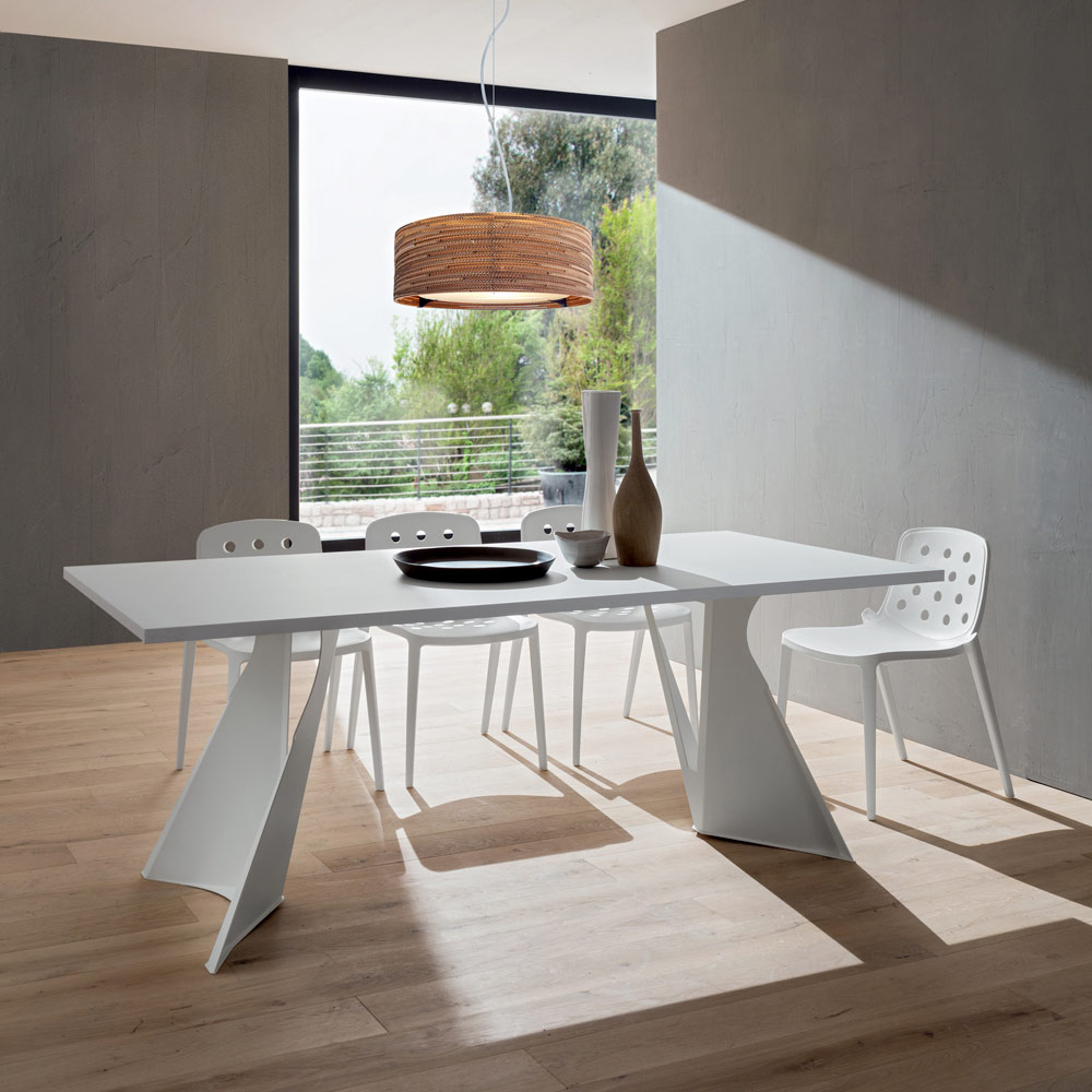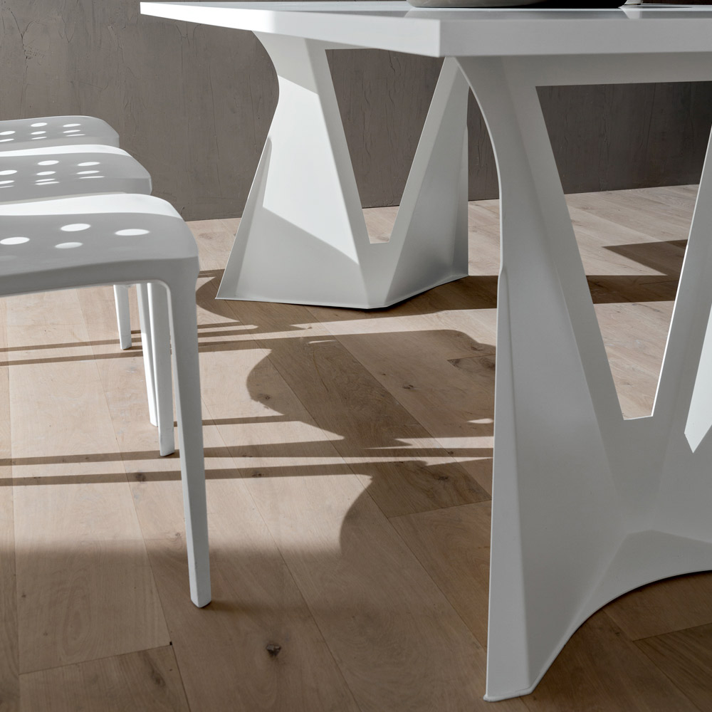 métal peint de la même couleur que le plateau. L'utilisation de fenix pour la construction du plateau offre à la table toute sa fonctionnalité car elle représente un matériau qui, grâce à l'utilisation de