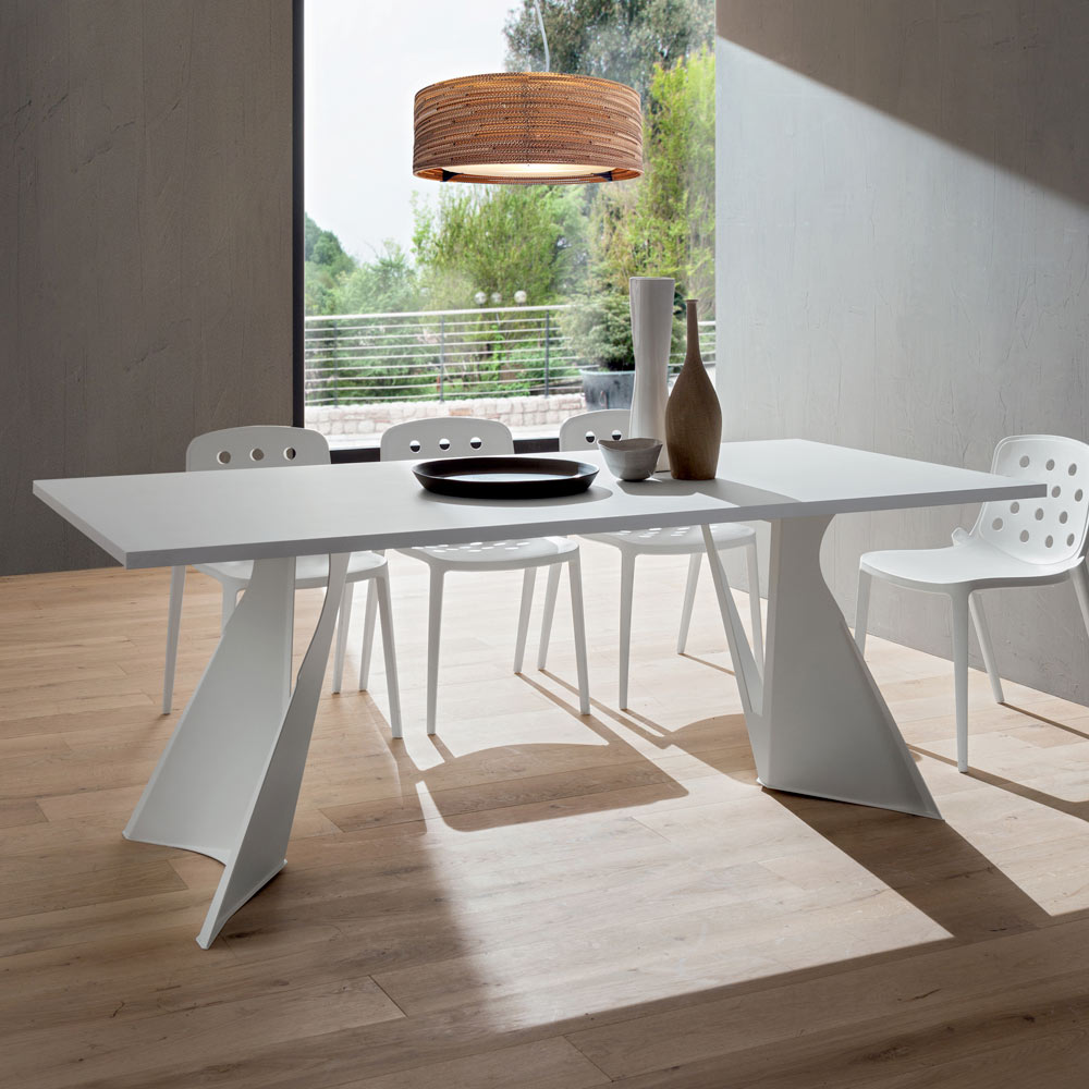 design imposant et majestueux . Cette caractéristique enrichit son esthétique ainsi que la forme inhabituelle des deux pieds qui donnent à la table un aspect presque futuriste, la rendant particulièrement adaptée à ceux qui aiment décorer et enrichir leurs pièces avec des éléments aux