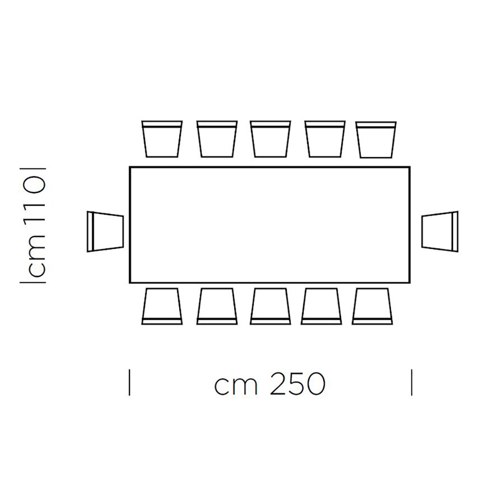 - L 250 x P 110 x H 75,5 cm (12 places).