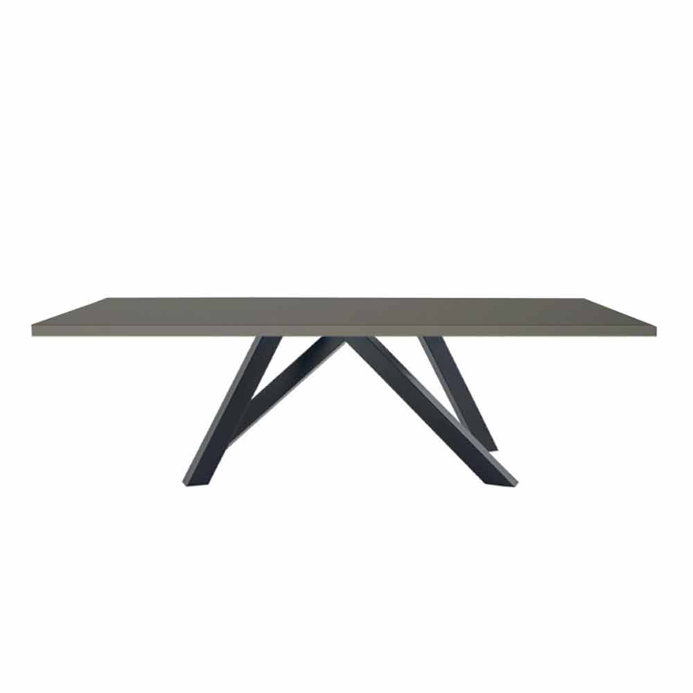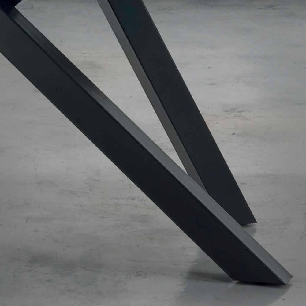 Table à manger avec plateau en fenix et base en acier fabriquée en Italie, de haute qualité.