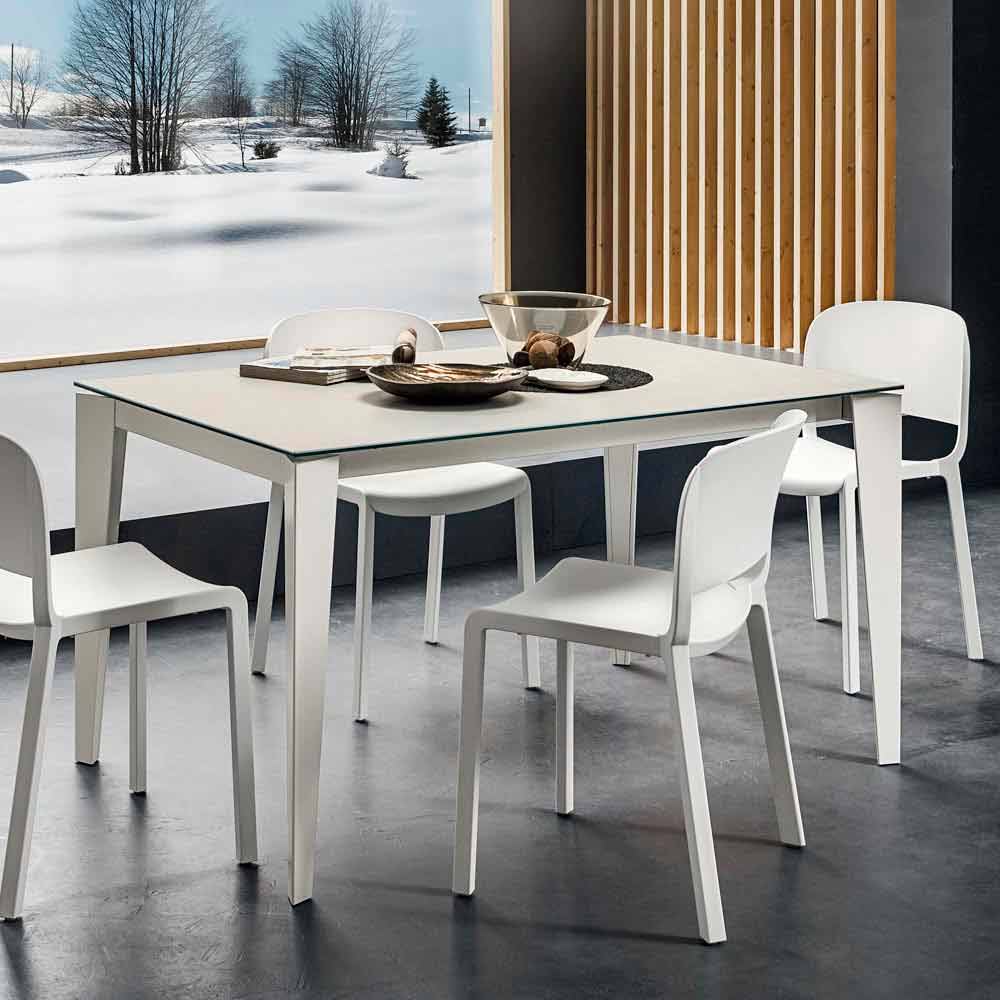 Table de cuisine en laminam avec structure en métal laqué Made in Italy.