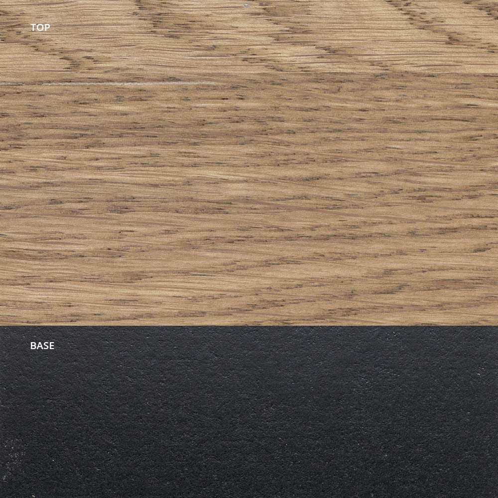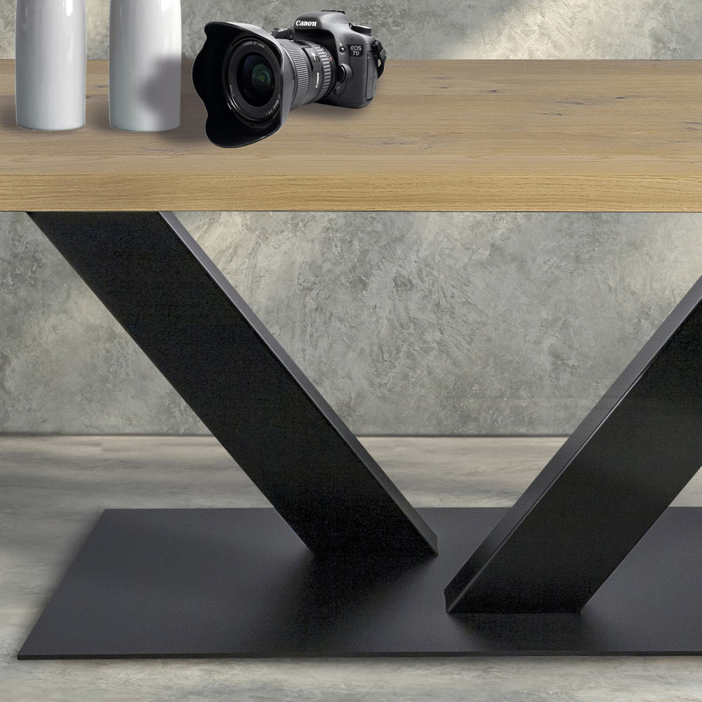 Table en bois plaqué en chêne noué plaqué et base en métal Made in Italy.