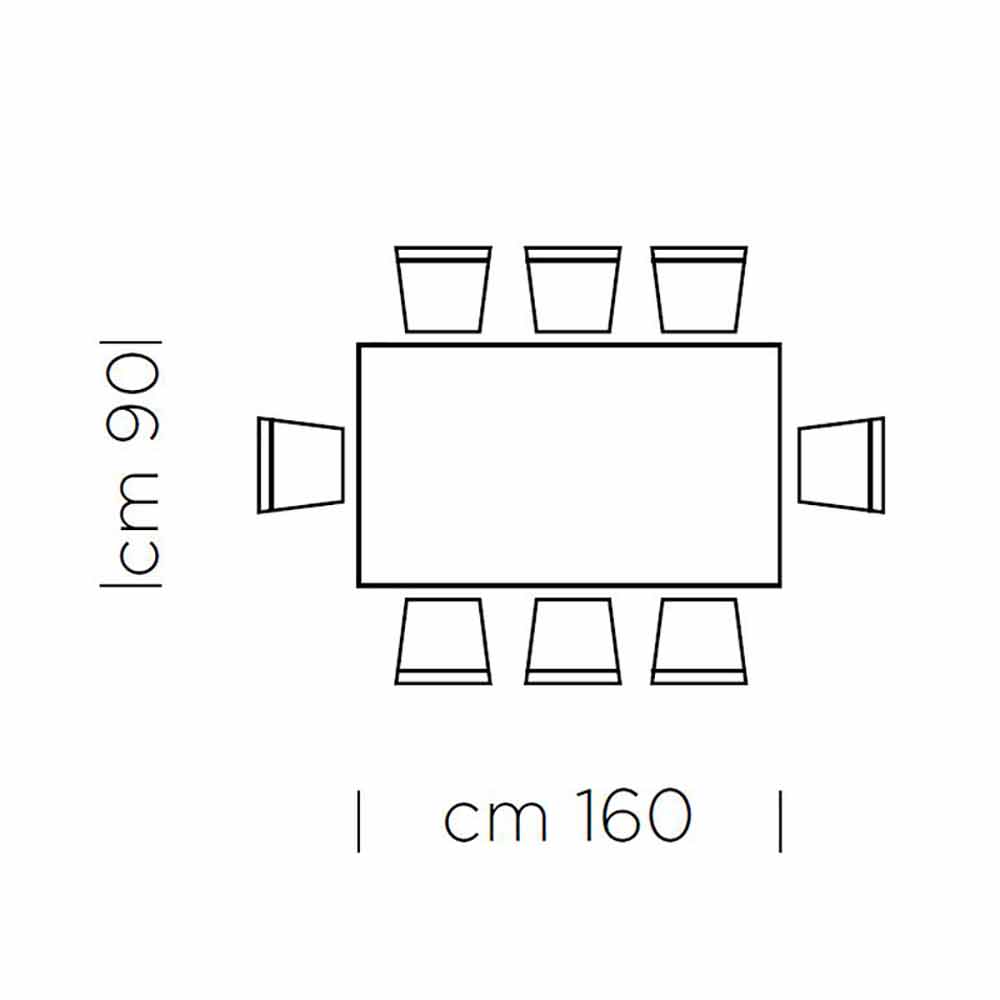 - L 160 x P 90 x H 75,3 cm (8 places) ;