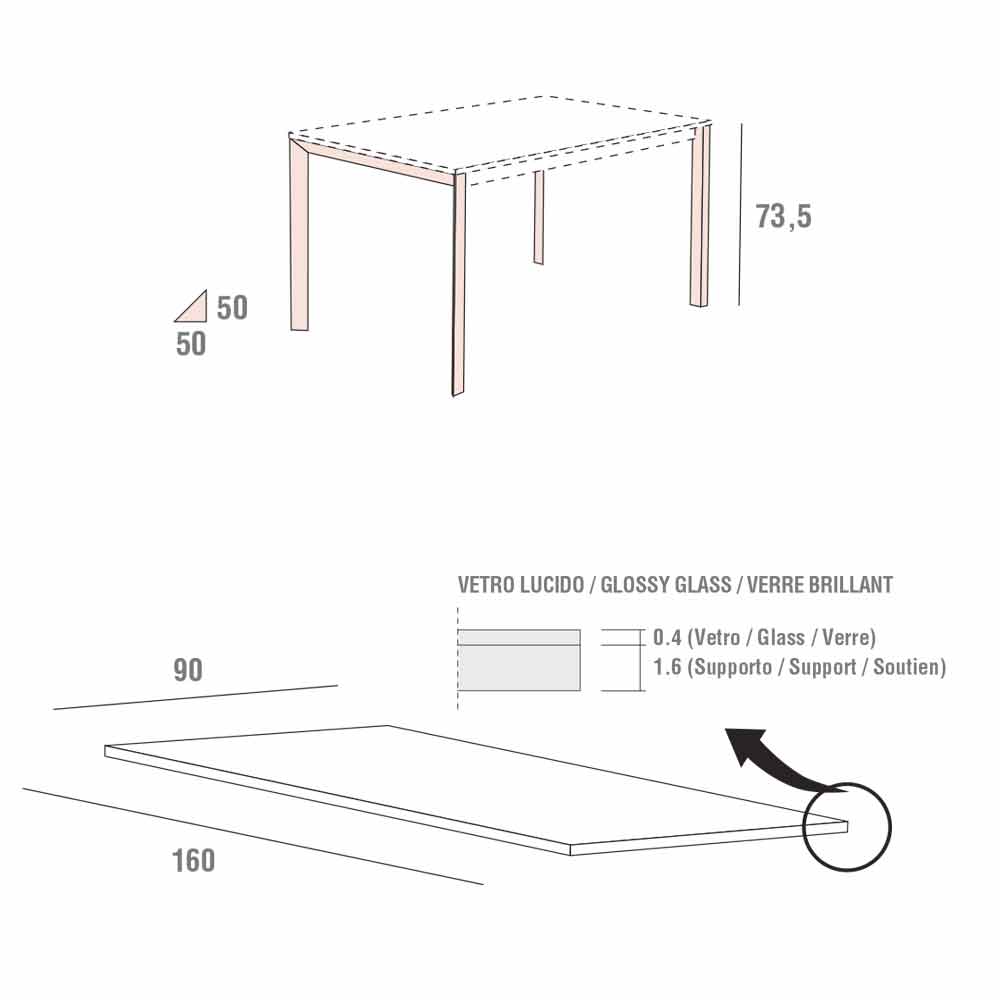 touche d'élégance donnée par le verre et la finition brillante particulière qui en augmente encore la valeur. Cette magnifique table a également un fort côté fonctionnel donné par l'utilisation de