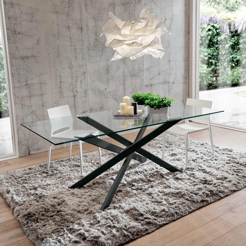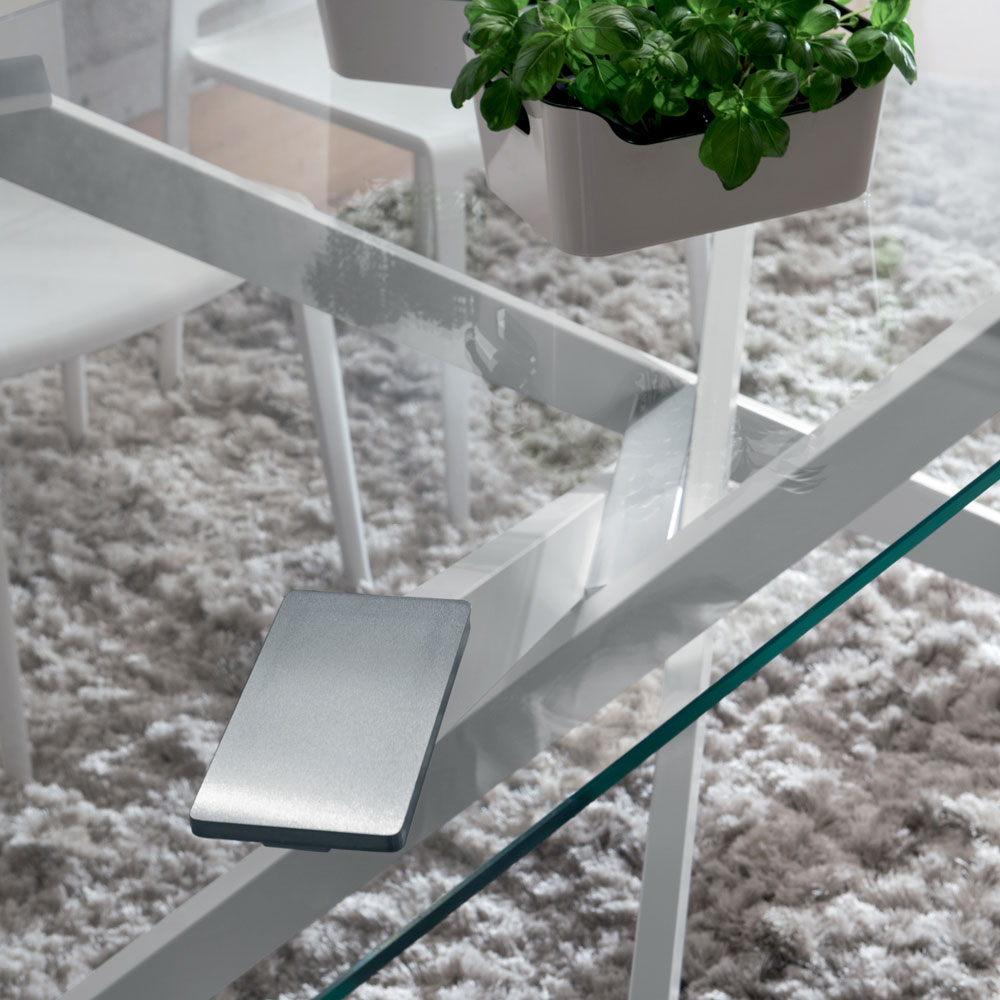 Table à manger avec plateau en verre transparent fabriqué en Italie, luxe.