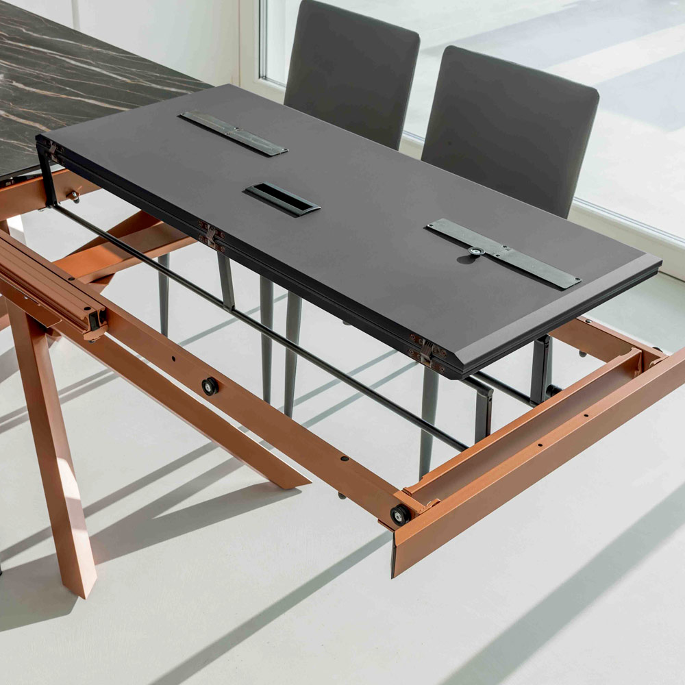 Cette table représente la synthèse parfaite entre l'ingénierie de pointe et le design esthétique. Il ne s'agit pas simplement d'une table extensible, mais d'une œuvre d'art fonctionnelle, conçue pour ceux qui ne veulent pas faire de compromis entre style et espace.