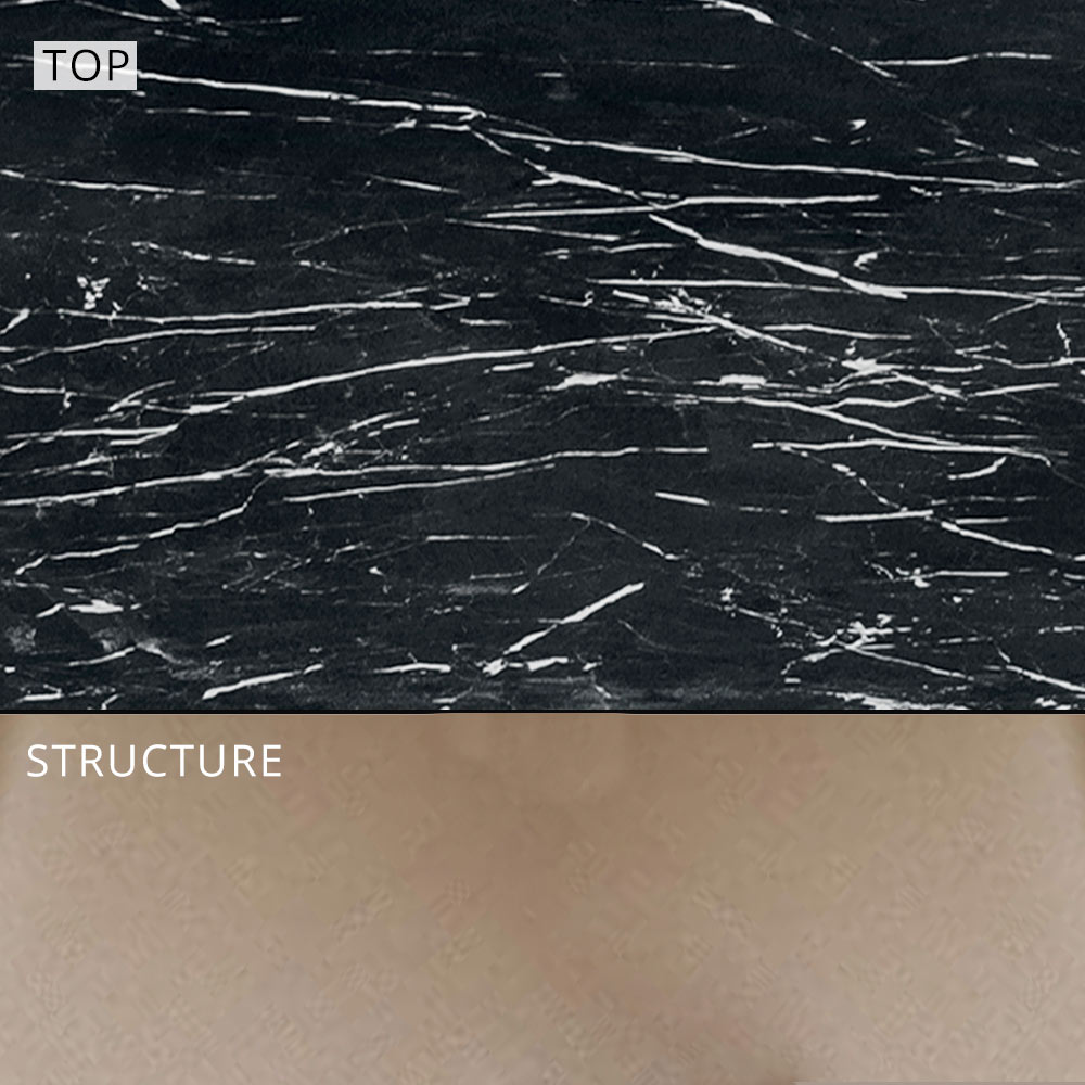 Finitions disponibles:- plateau en grès cérame effet marbre noir et aluminium blanc
