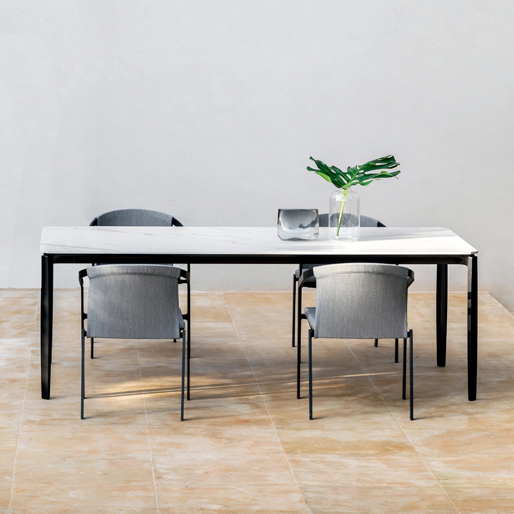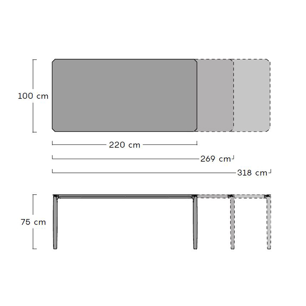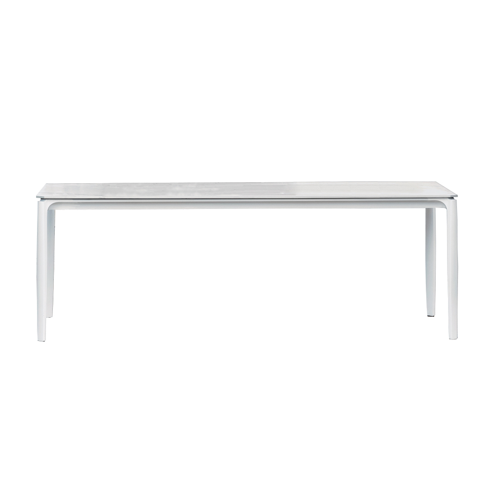 Table à manger extensible jusqu'à 318 cm design extérieur en aluminium et plateau en grès en différentes finitions, fabriquée en Italie.