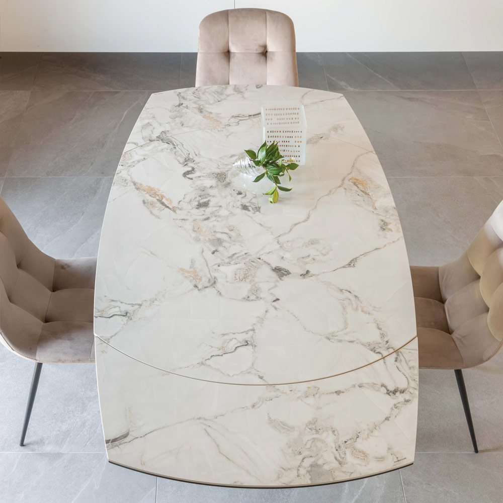 Table à manger extensible en céramique et base en métal - Indira