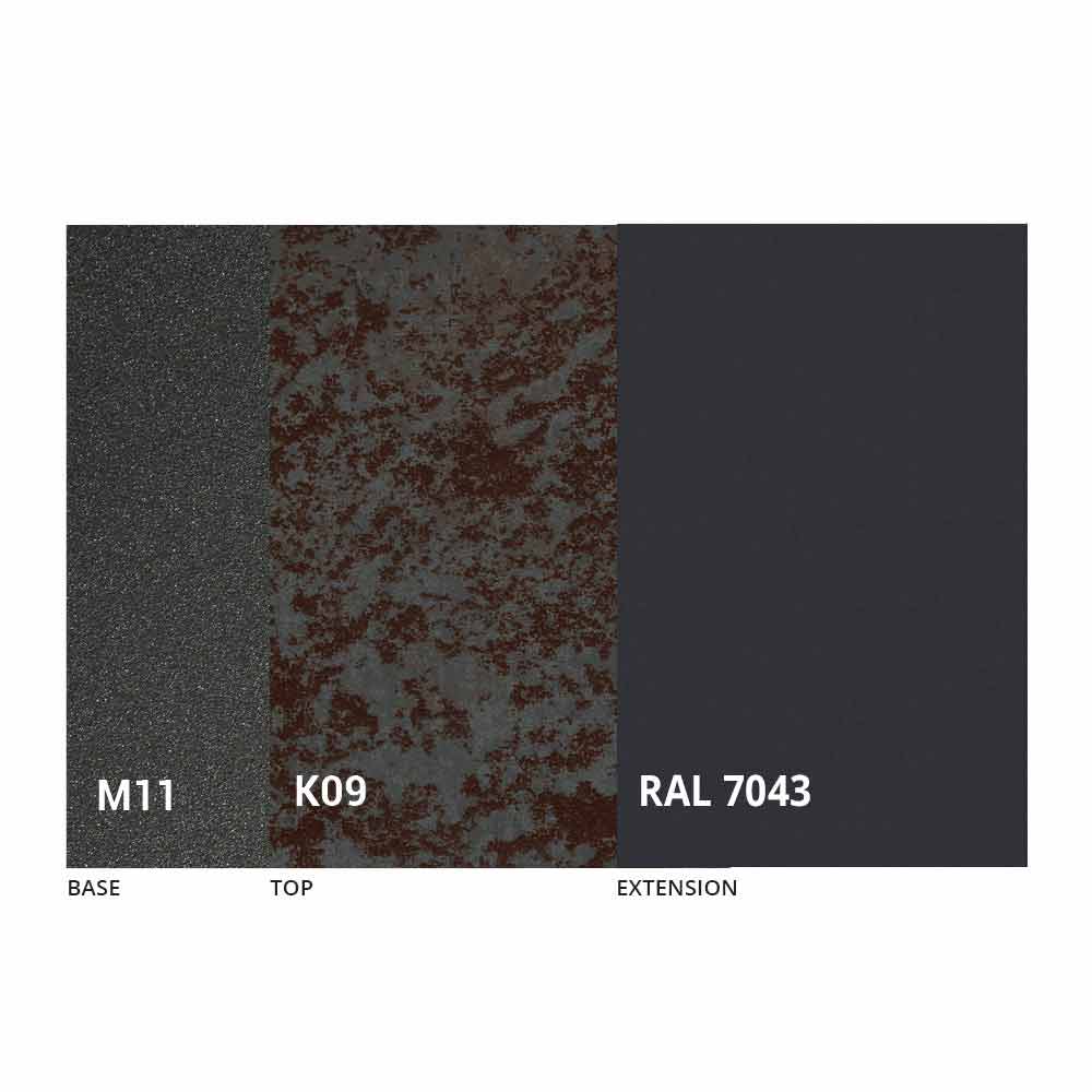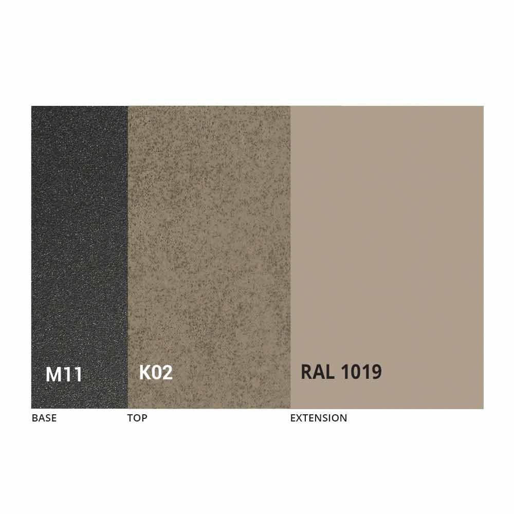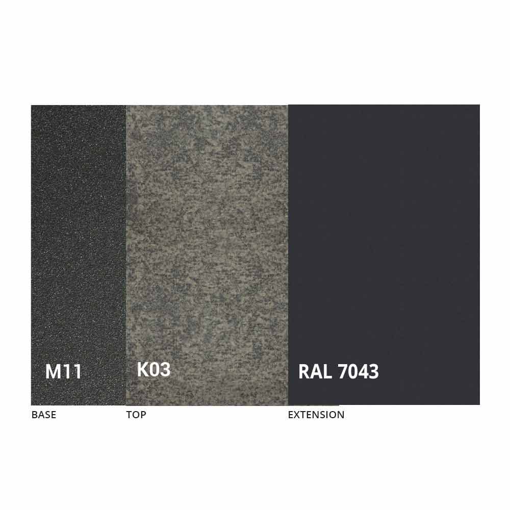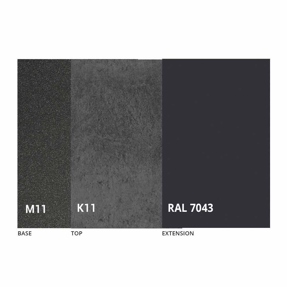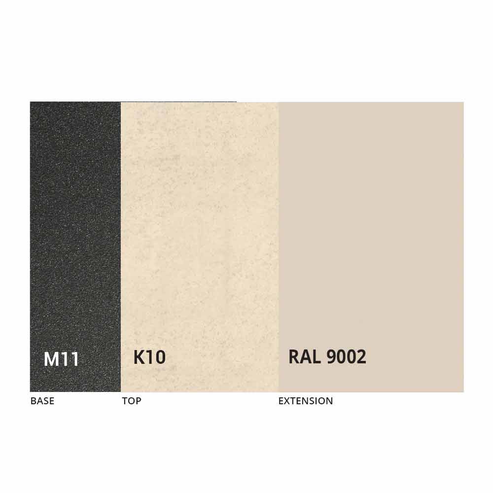 NB : lors de l'ouverture de la table, il est nécessaire de soulever la rallonge, de la positionner au niveau du plateau et, ensuite seulement, de l'ouvrir. Le plateau et la base de la table peuvent être personnalisés avec différents matériaux et finitions d'échantillons ou laquage RAL. Pour plus d'informations, contactez-nous en utilisant le formulaire " Demande d'informations" approprié.