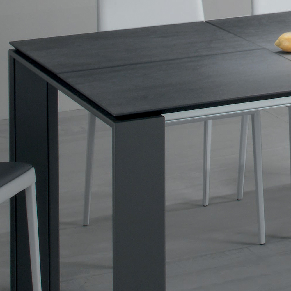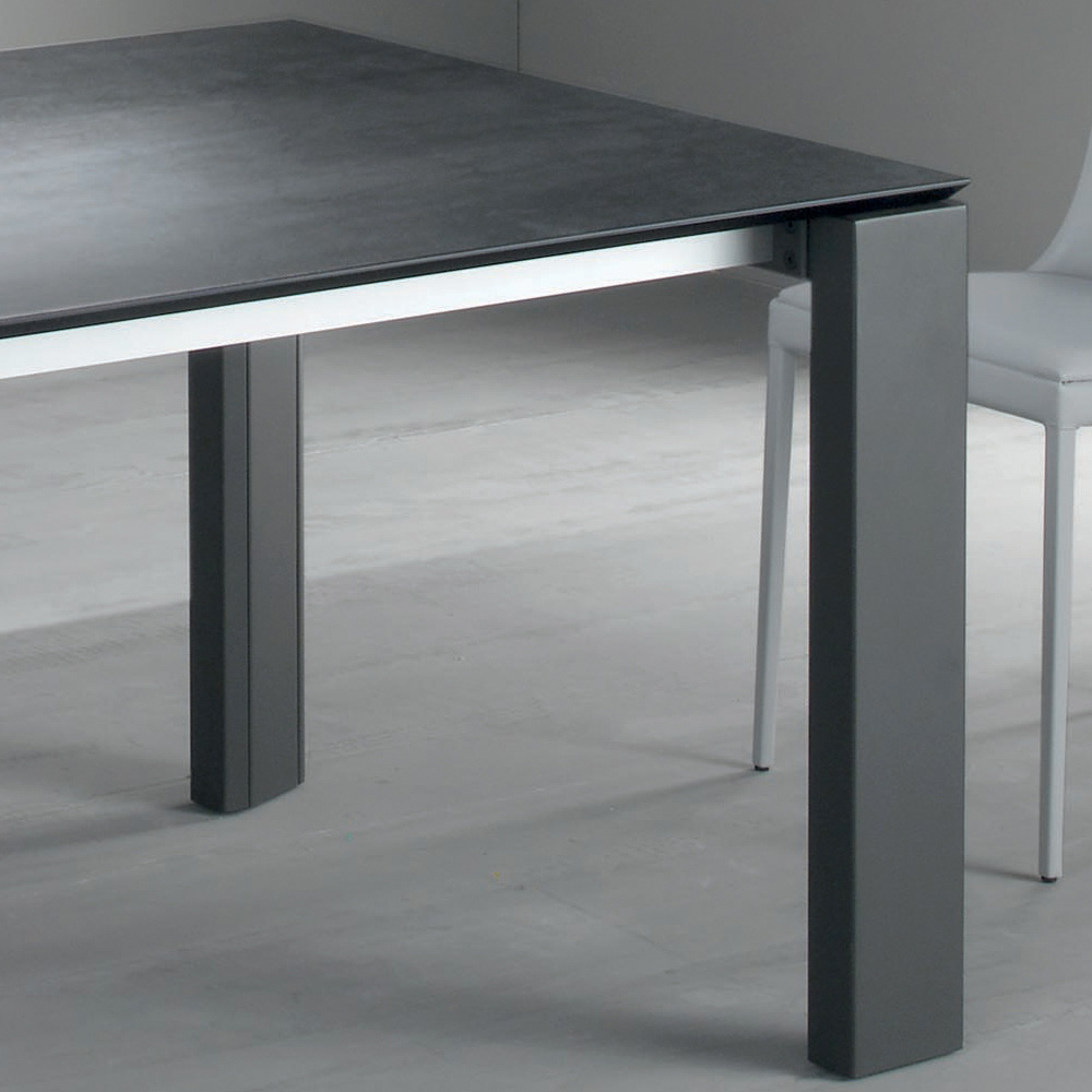 Table à manger extensible en céramique et base en métal, différentes tailles et finitions fabriquées en Italie.