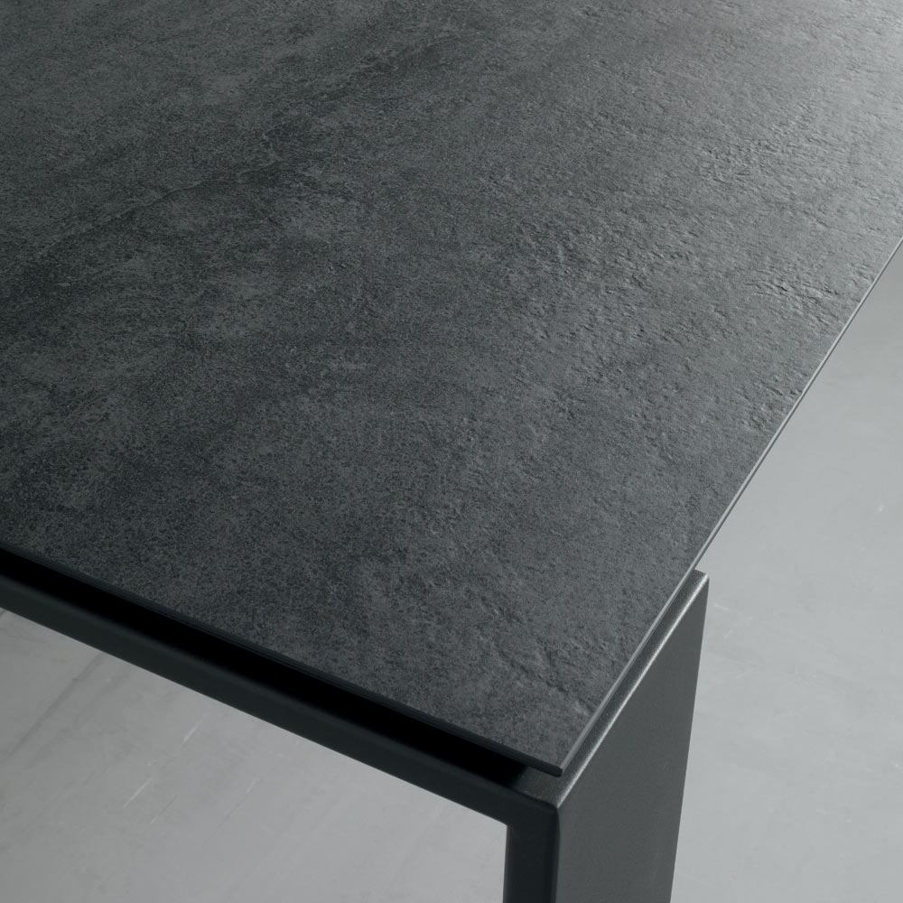 Table à manger extensible jusqu'à 2,8 m en métal et plateau en céramique mate - Rashid