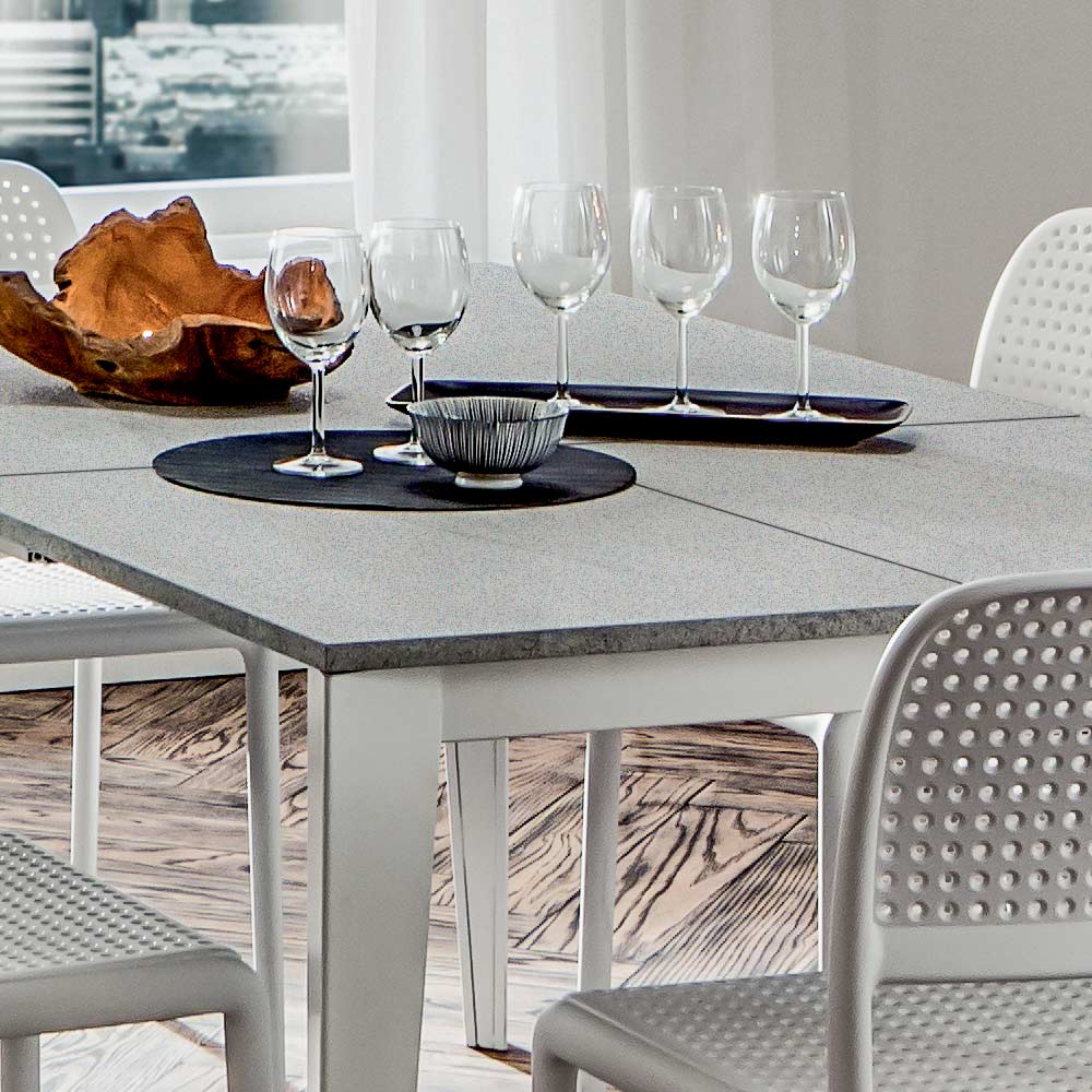 Table à manger extensible avec plateau carré en hpl Made in Italy, de haute qualité.