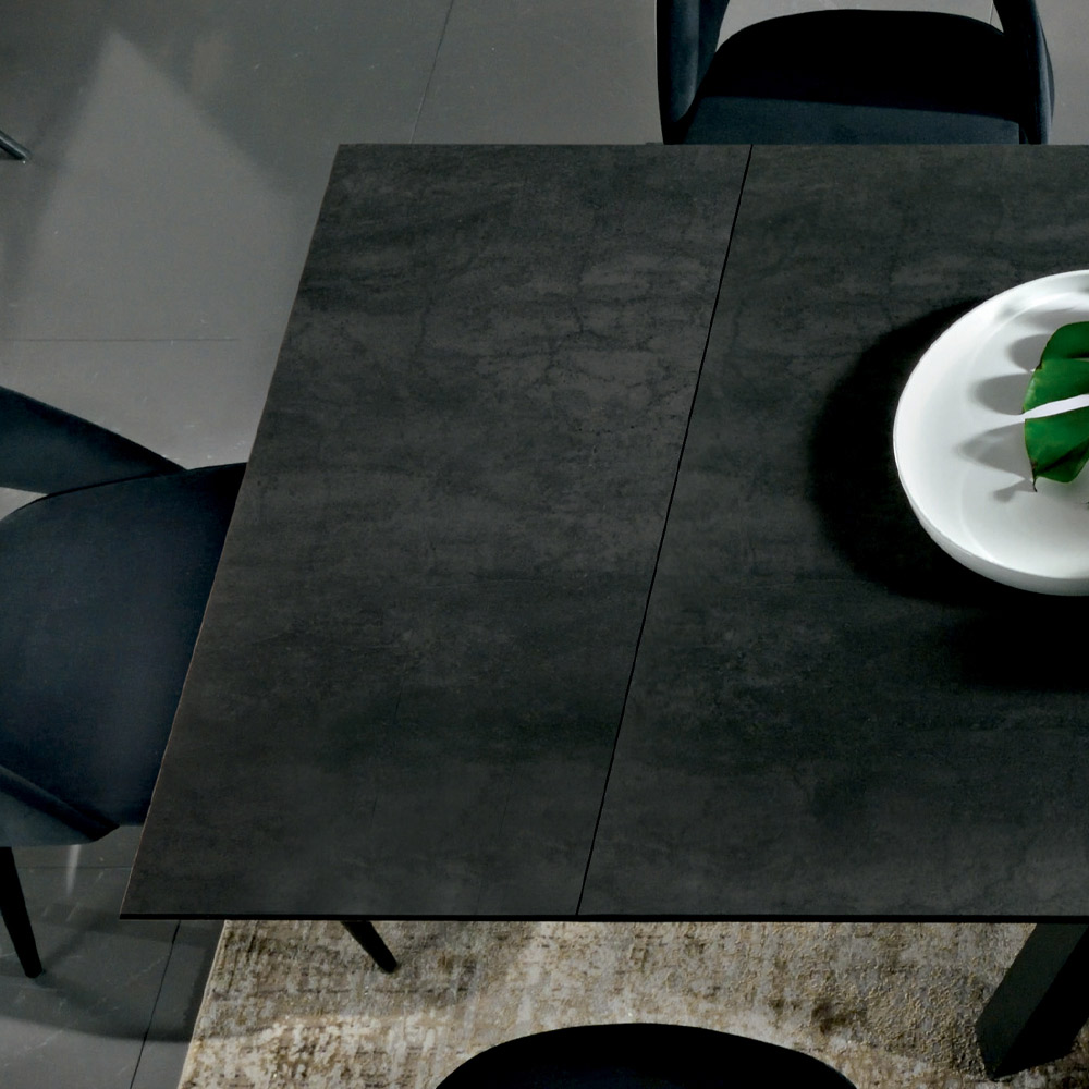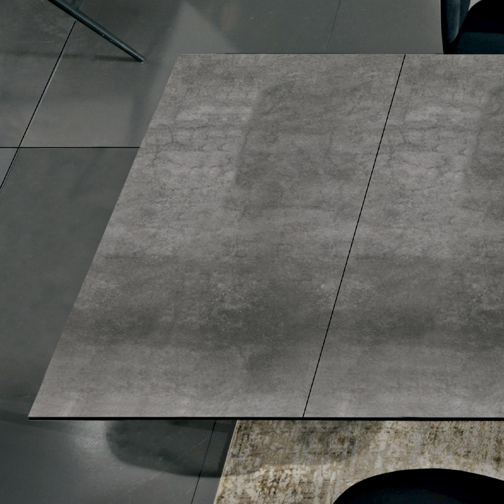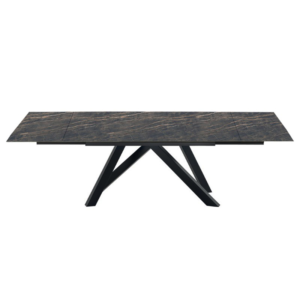 Table à manger avec plateau extensible en céramique laminam et base en acier, bel article Made in Italy.