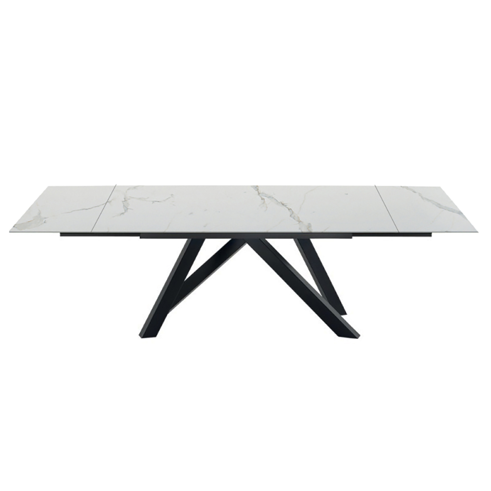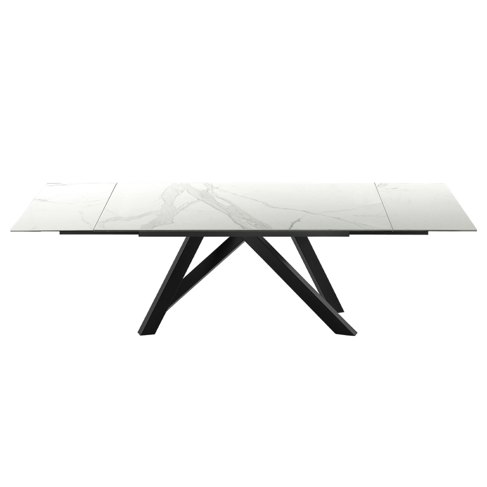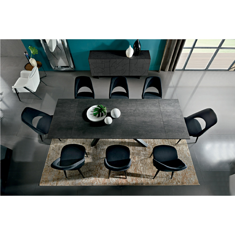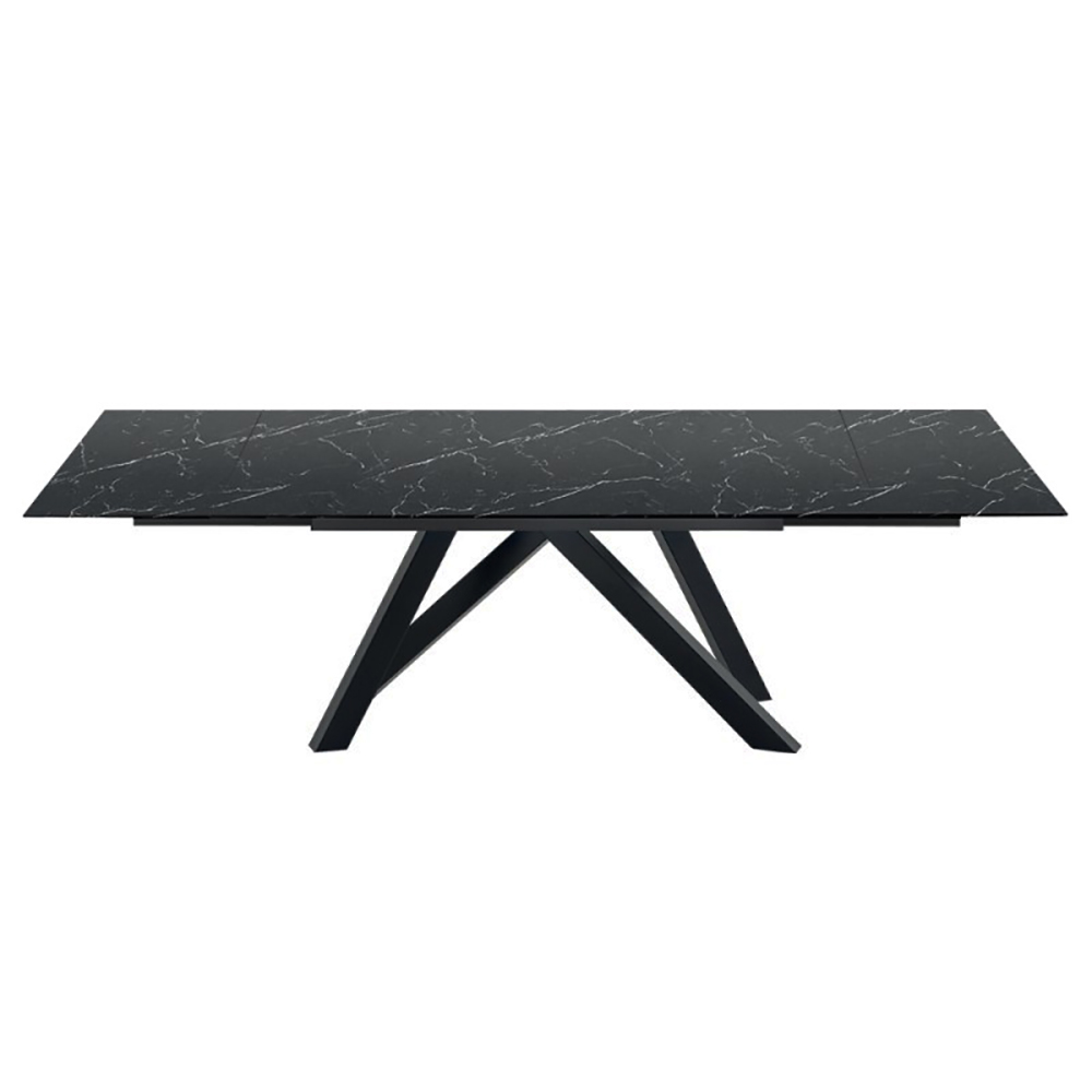 Table à manger avec plateau extensible en céramique laminam et base en acier, bel article Made in Italy.