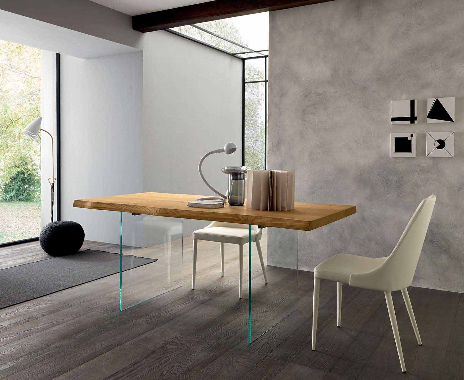 Table à manger extensible avec plateau en bois et structure en verre Made in Italy.