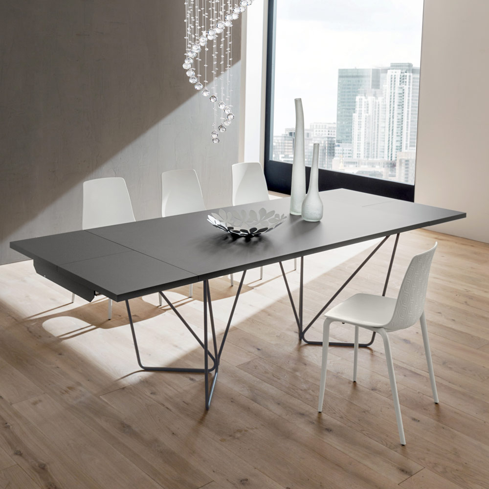 et révolutionnaire . Son point fort est représenté précisément par le piètement qui enrichit son style, lui donnant toute sa personnalité innovante et raffinée. Outre cette particularité, il présente également la possibilité d'étendre le plateau jusqu'à un maximum de 280 cm grâce à