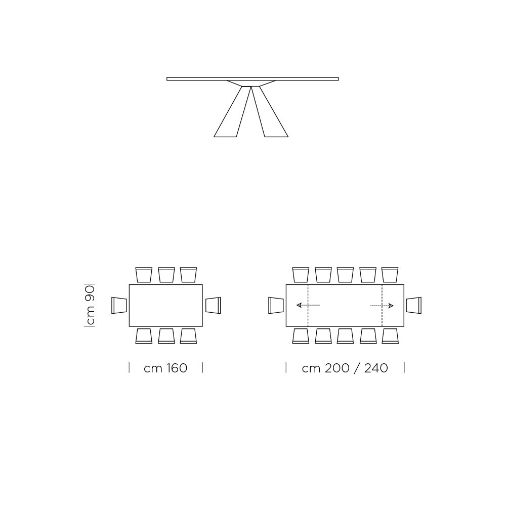 - L 160/240 x P 90 x H 75,5 cm 12 places (2 rallonges de 40 cm) ;