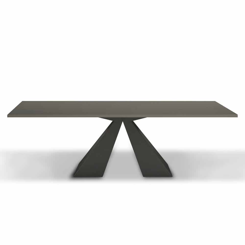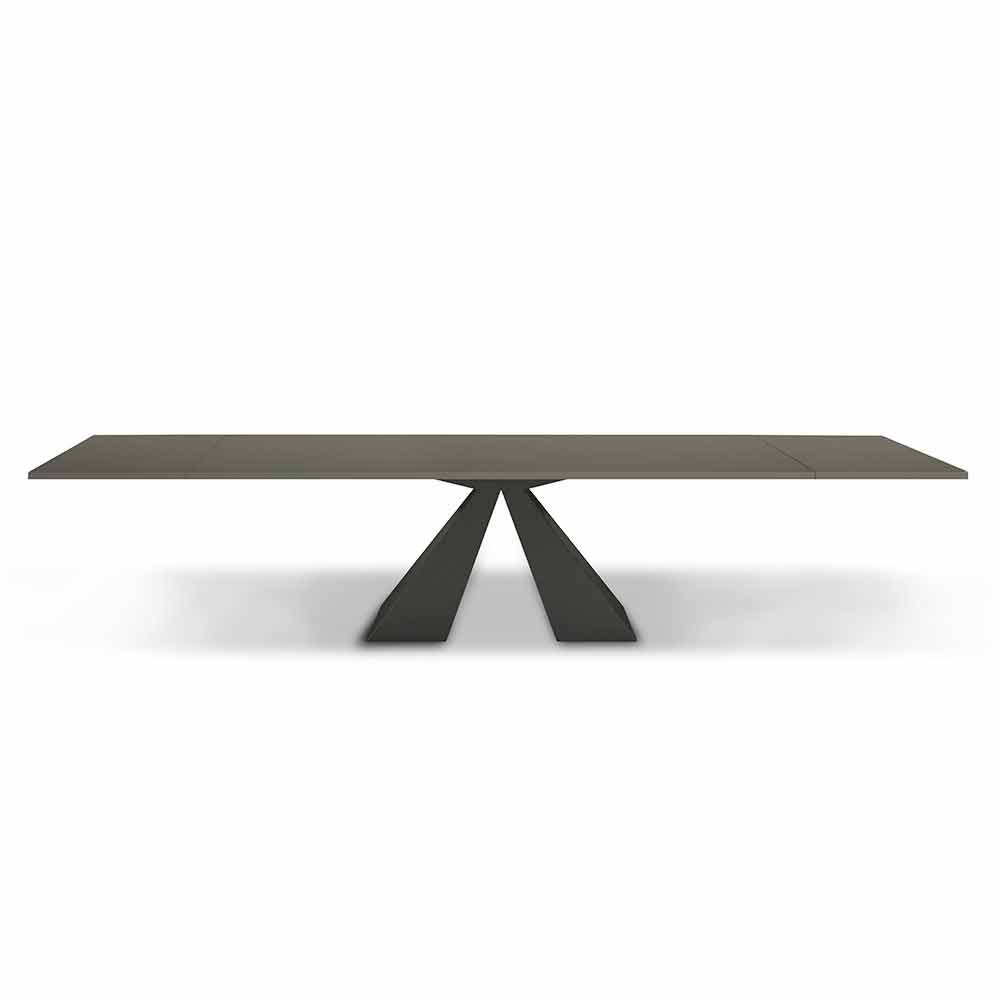 Table à manger de luxe avec plateau extensible en fenix et base en acier Made in Italy.