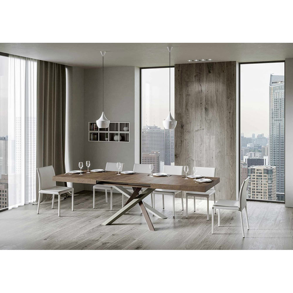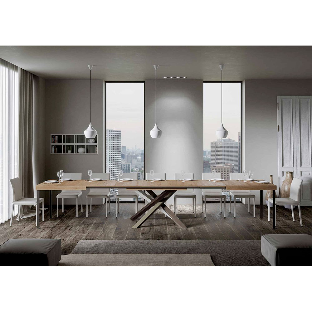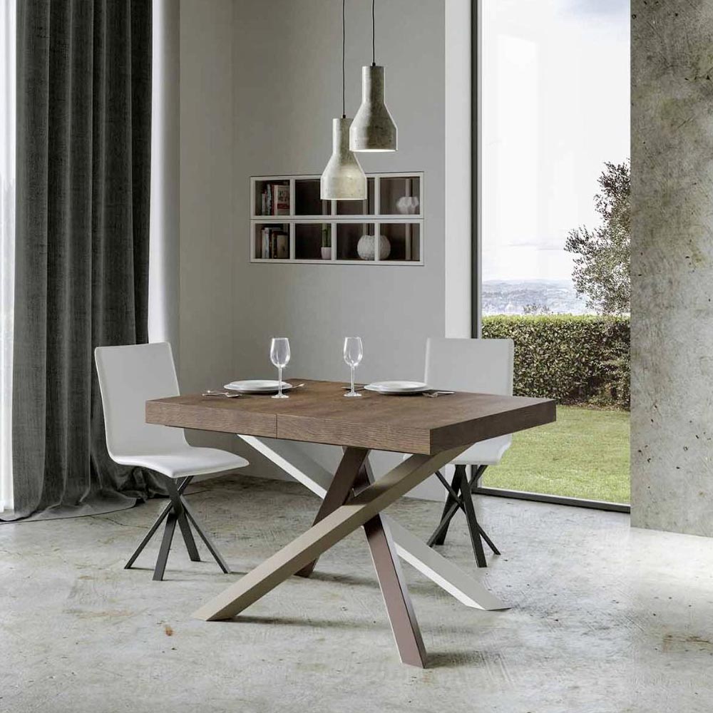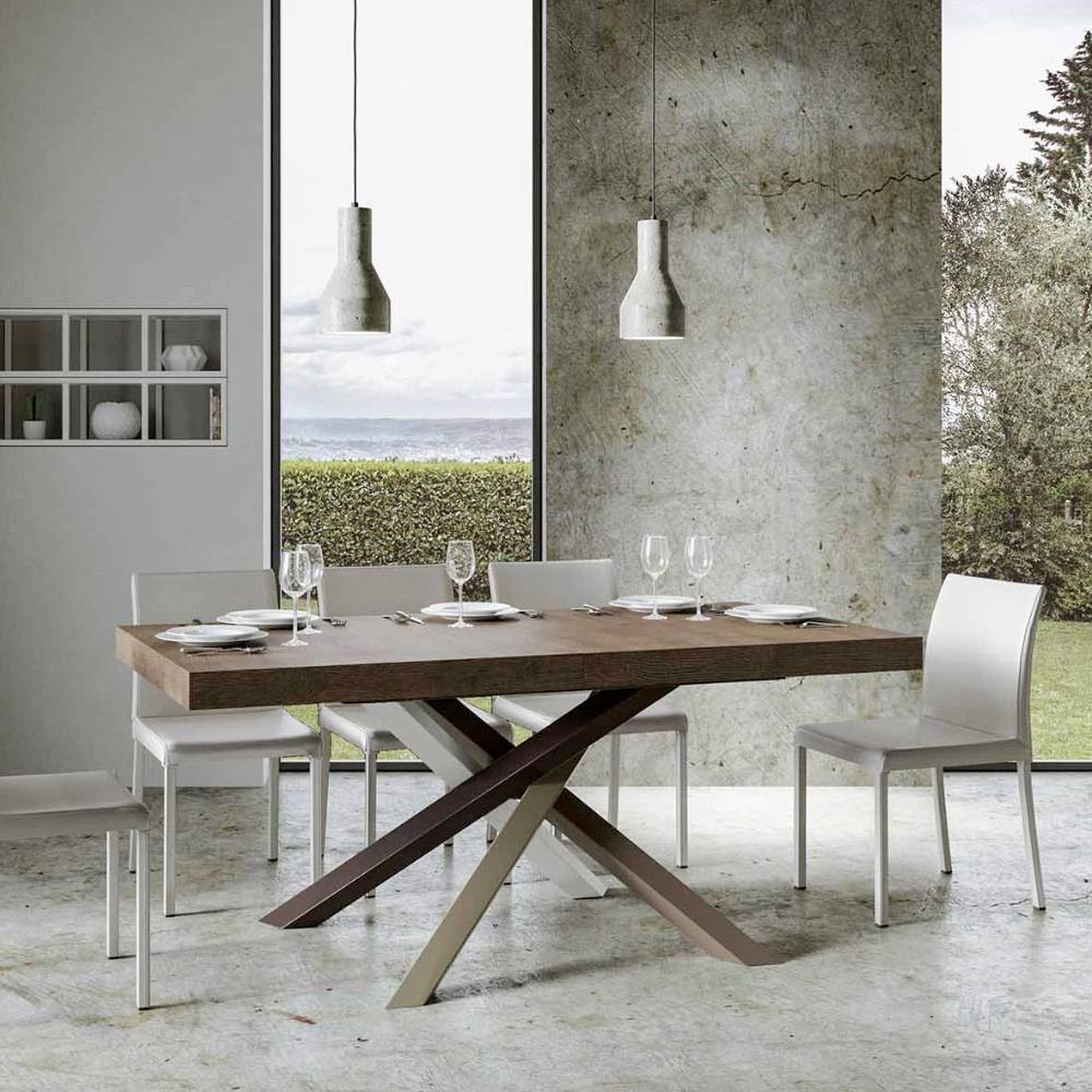 Table à rallonge en fer et bois ennobli, Made in Italy