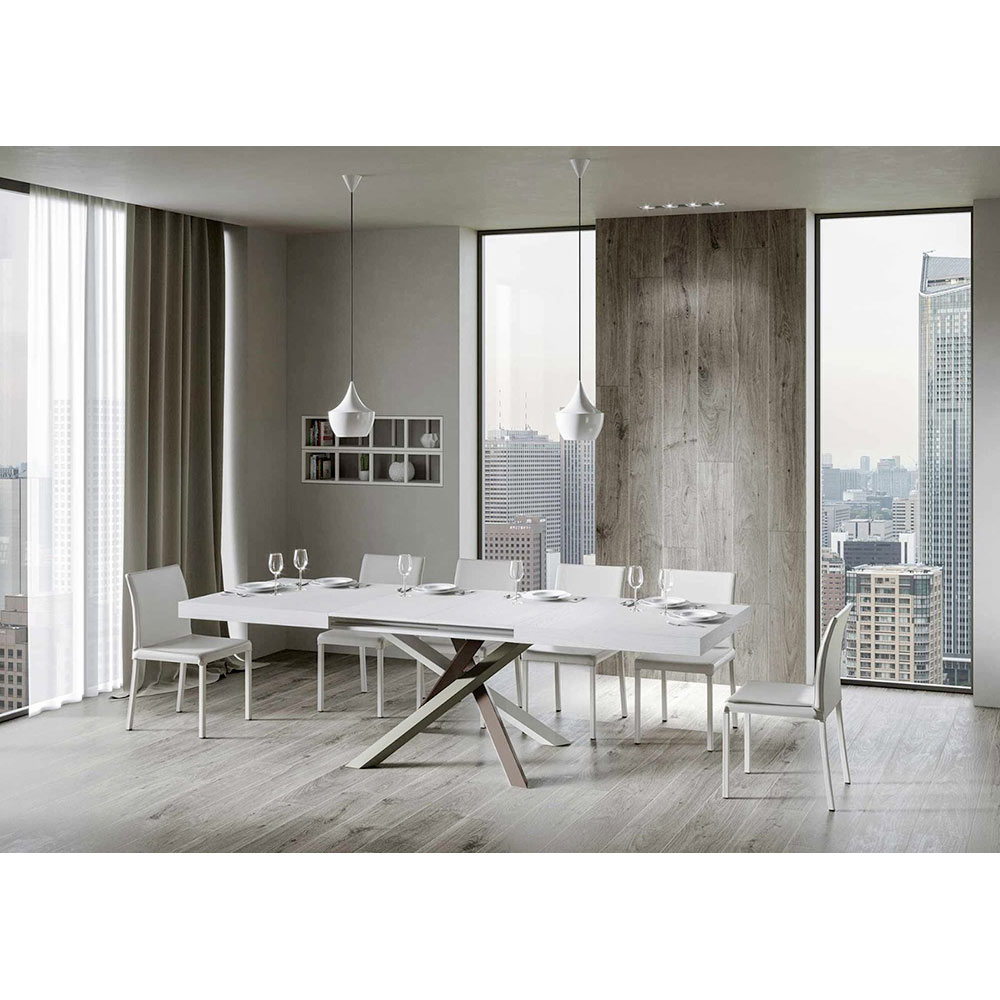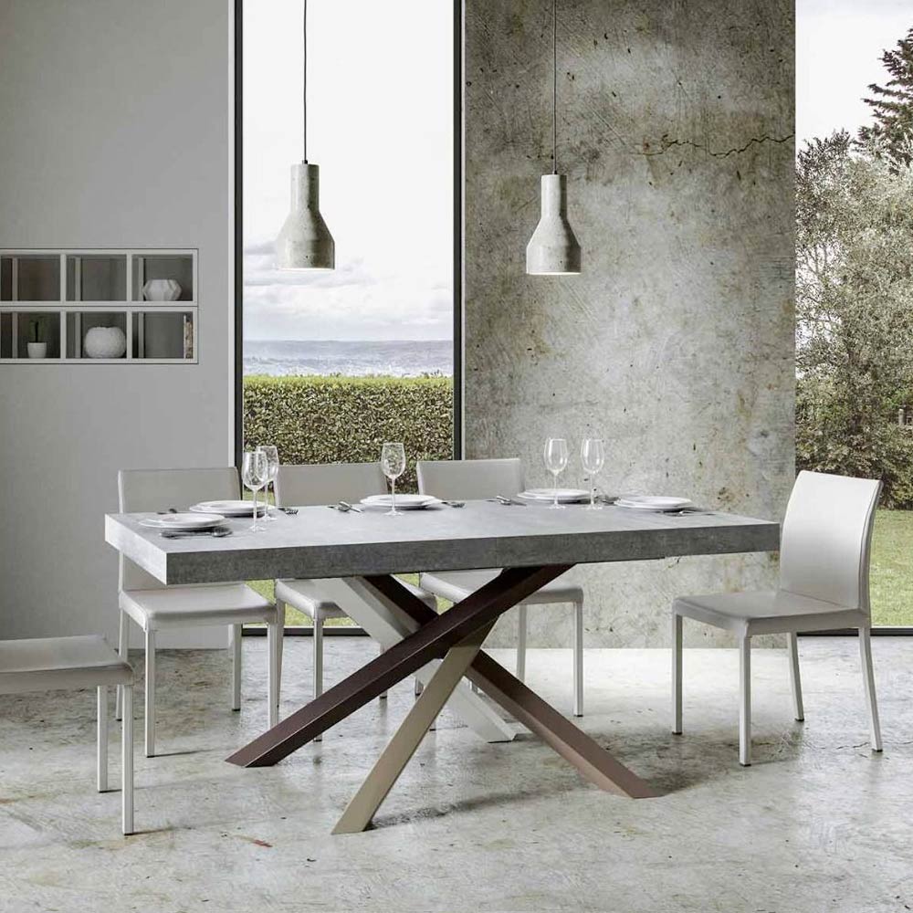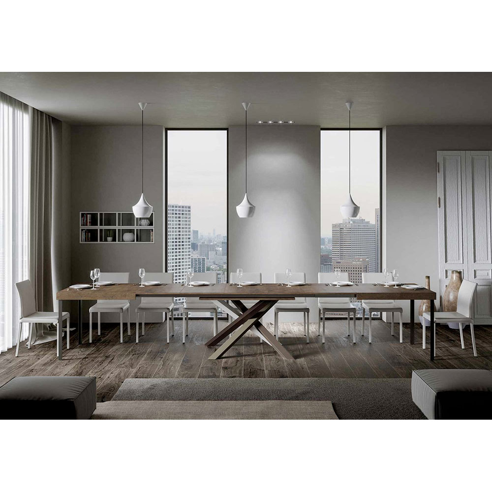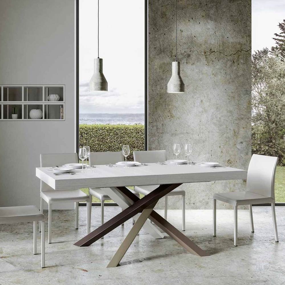 Table à rallonge en fer et bois ennobli, Made in Italy