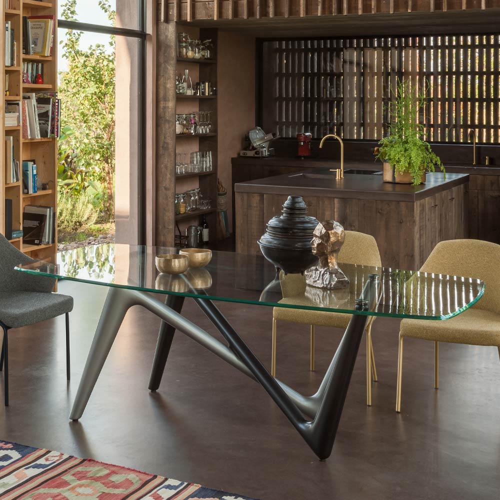 Table à manger en polyuréthane et verre Made in Italy