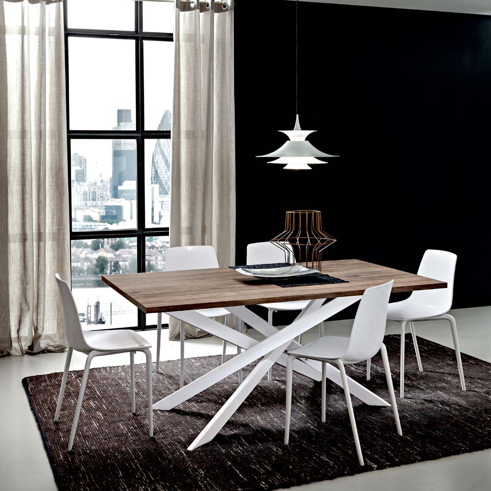 Table à manger de luxe en HPL avec base en métal peint Made in Italy.