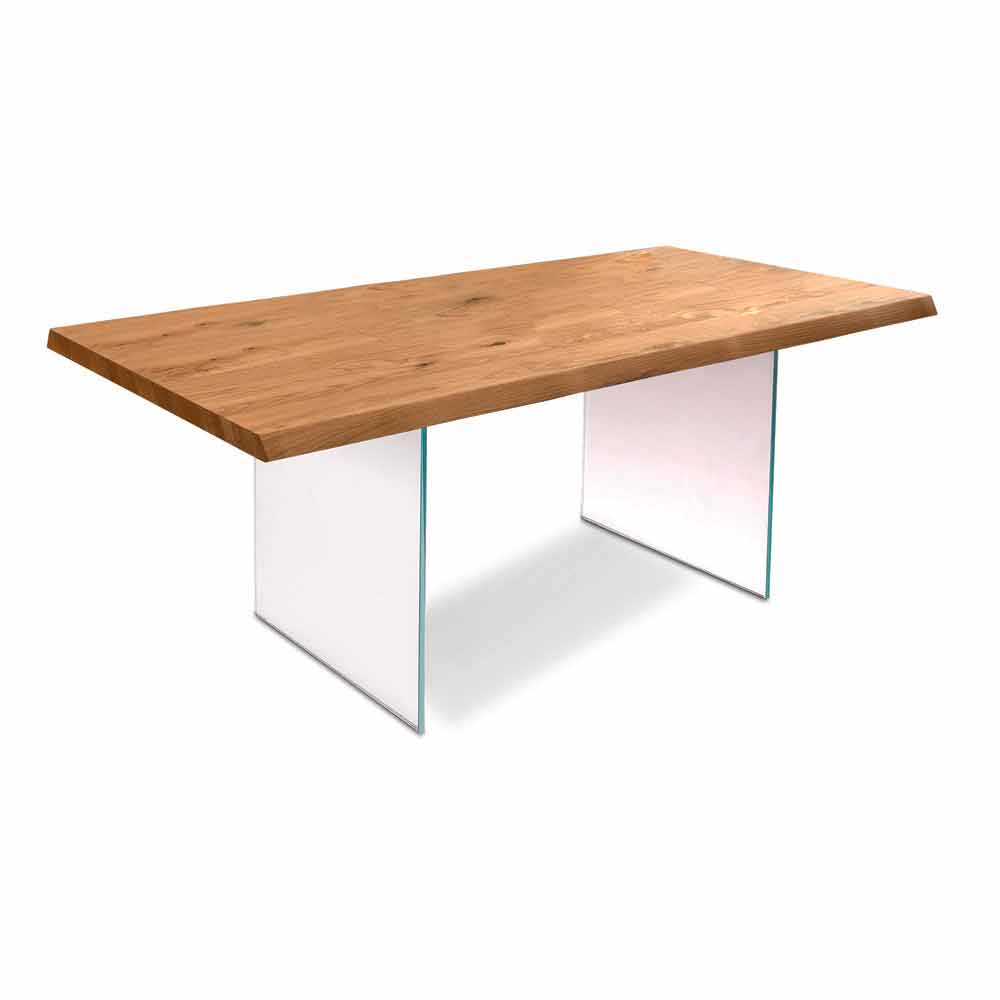 Table à manger moderne en plaqué chêne, jambes en verre, Nico