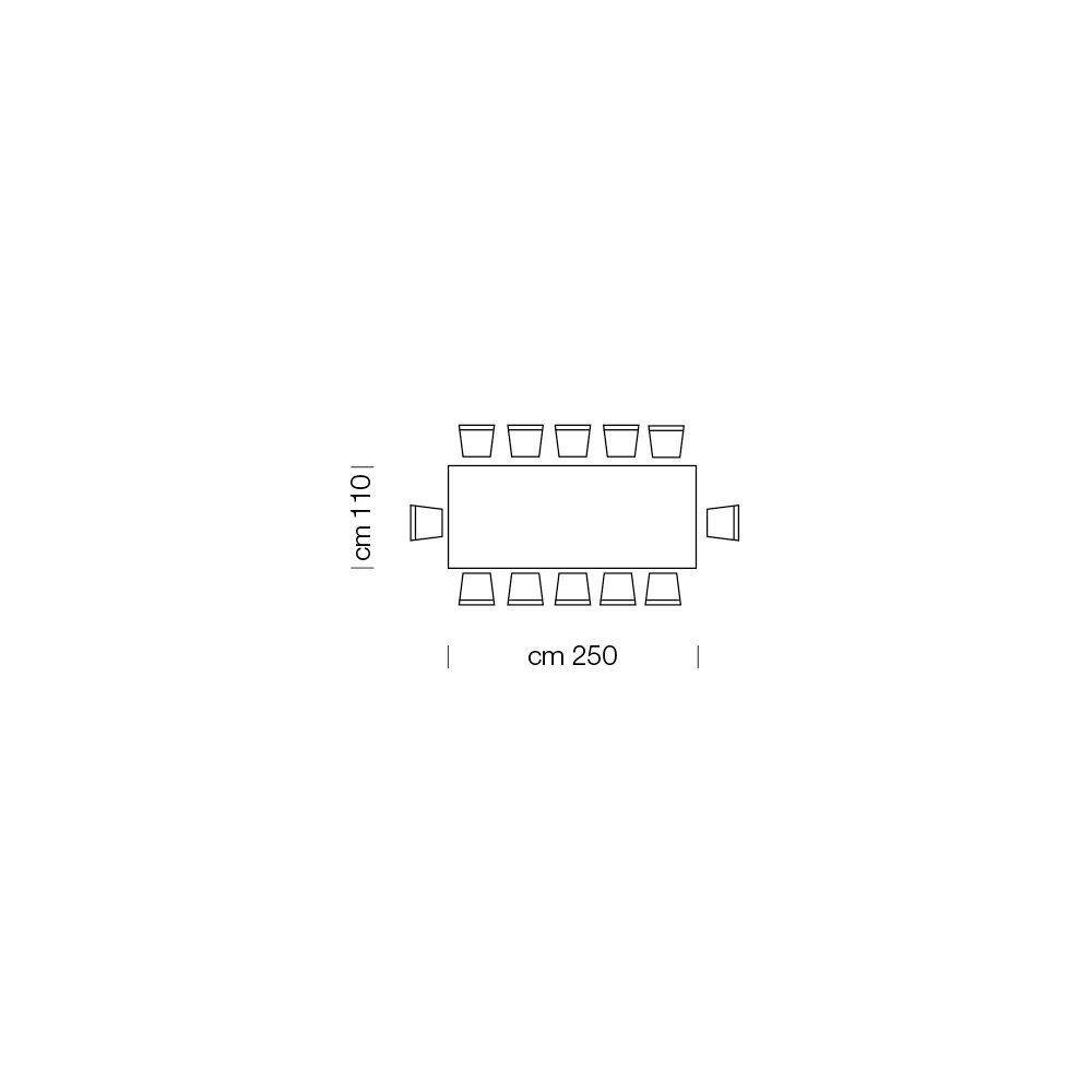 L 250 x P 110 x H 75 cm 12 places