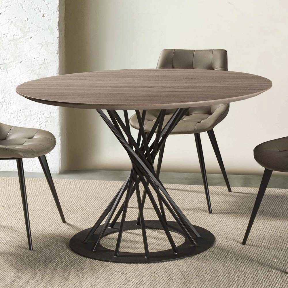 Table à manger ronde avec plateau en bois laminé et base en acier - Mileto