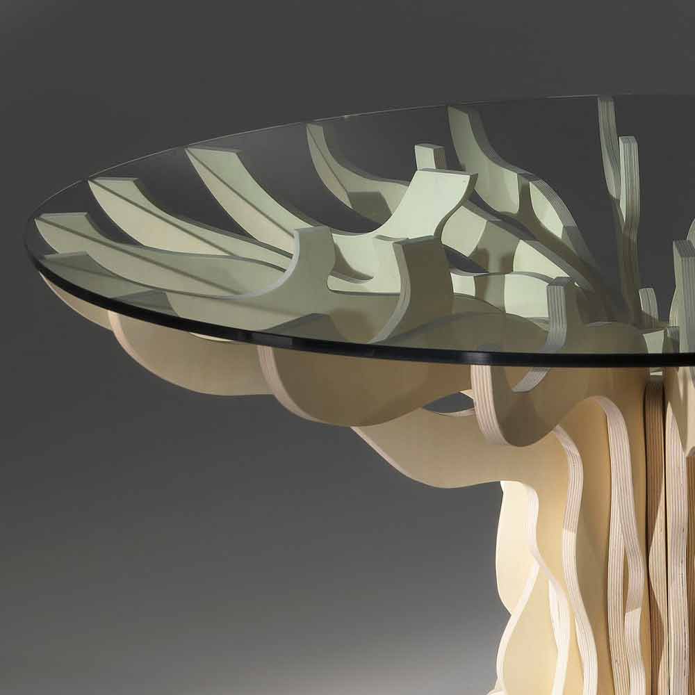 Table à manger ronde en bois avec plateau en cristal tempéré Dalia, made in italy Table de design moderne rèalisée en multicouches de bouleau naturelle. Plateau en cristal tempéré très claire. La qualité de ce produit est garantie par la fabrication artisanale des matériaux nobles utilisés, selectionnés et façonnés par la maîtrise des artisans. S' agissant d' un article fait à la main , vous pouvez demander la créations de progets personnalisés et sur mesure. Demandez un devis à : clienti@viadurini.it"
