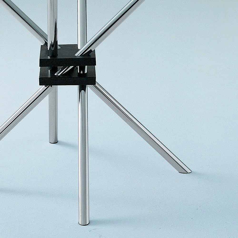 Table à manger avec plateau rond en verre et base en acier Made in Italy.