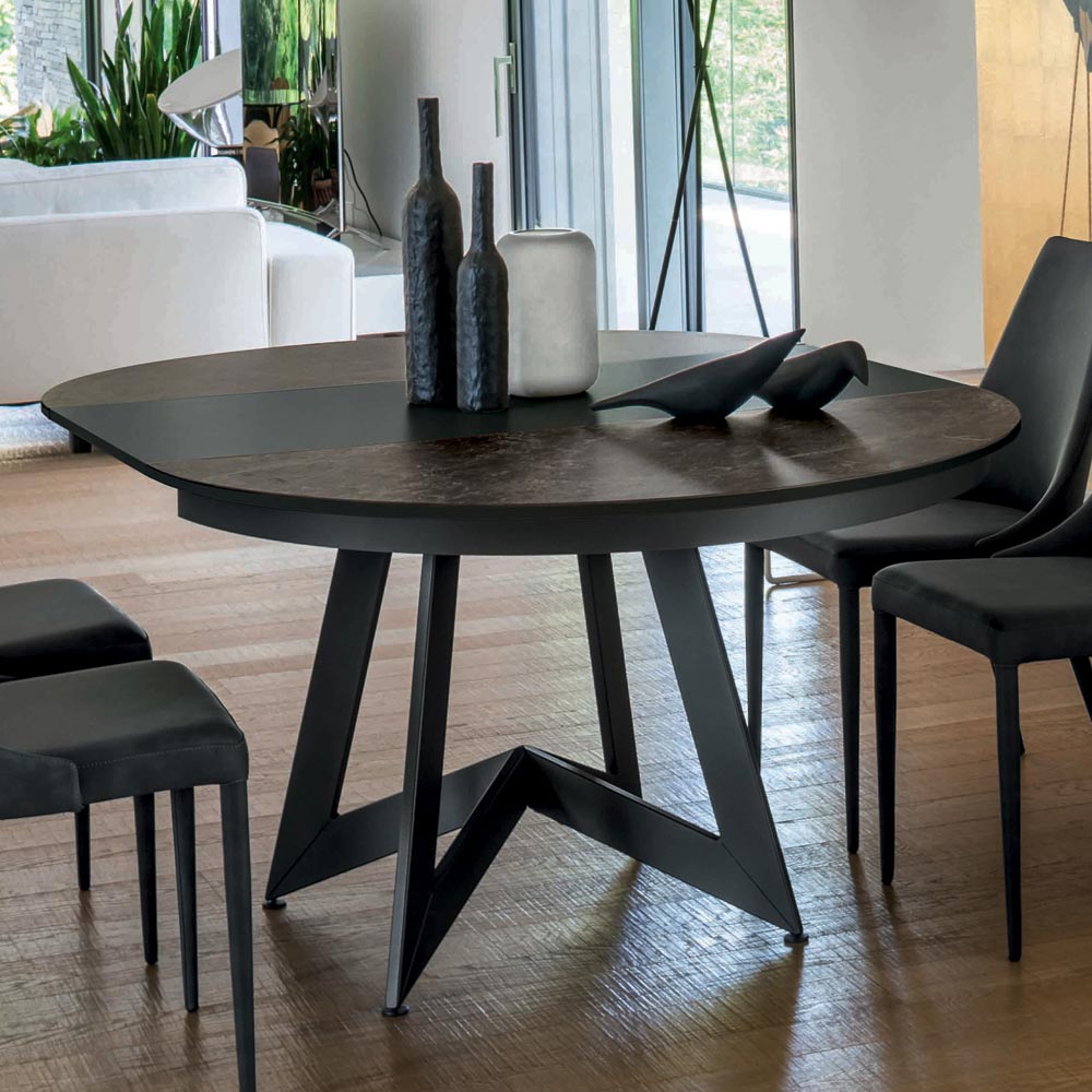 Table à manger ronde extensible en céramique et métal peint Made in Italy.